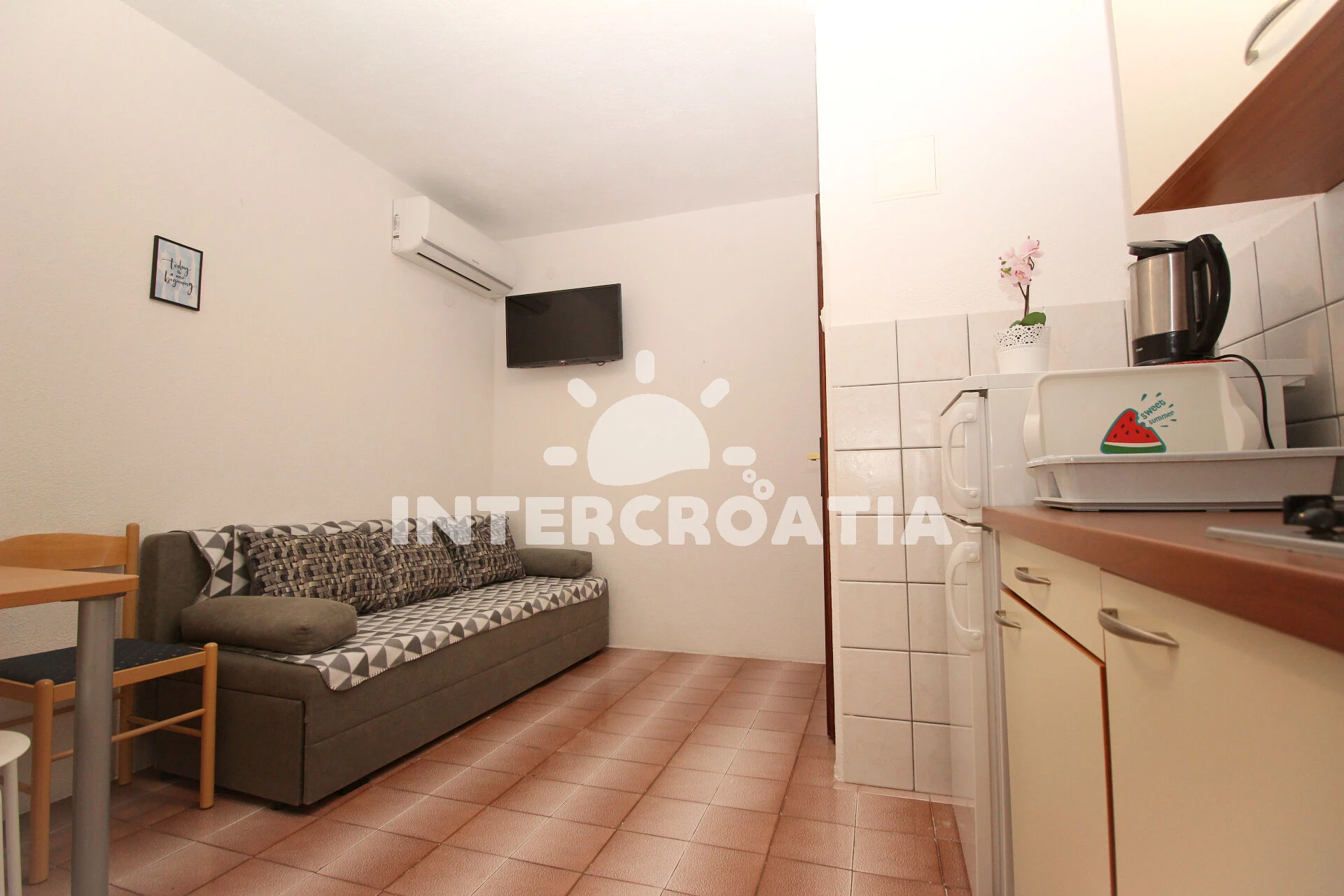 Apartmán (25 m2) s terasou. Nachází se v přízemí objektu. Apartmán má 1 ložnici a je vhodný pro až 2 osoby. Kuchyňská linka je vybavena varnou deskou, kávovarem, rychlovarnou konvicí, nádobím, lednicí. K dispozici televize se satelitním programem. Ložnice s dvoulůžkem. Koupelna se sprchovým koutem, umyvadlem, fénem a WC.