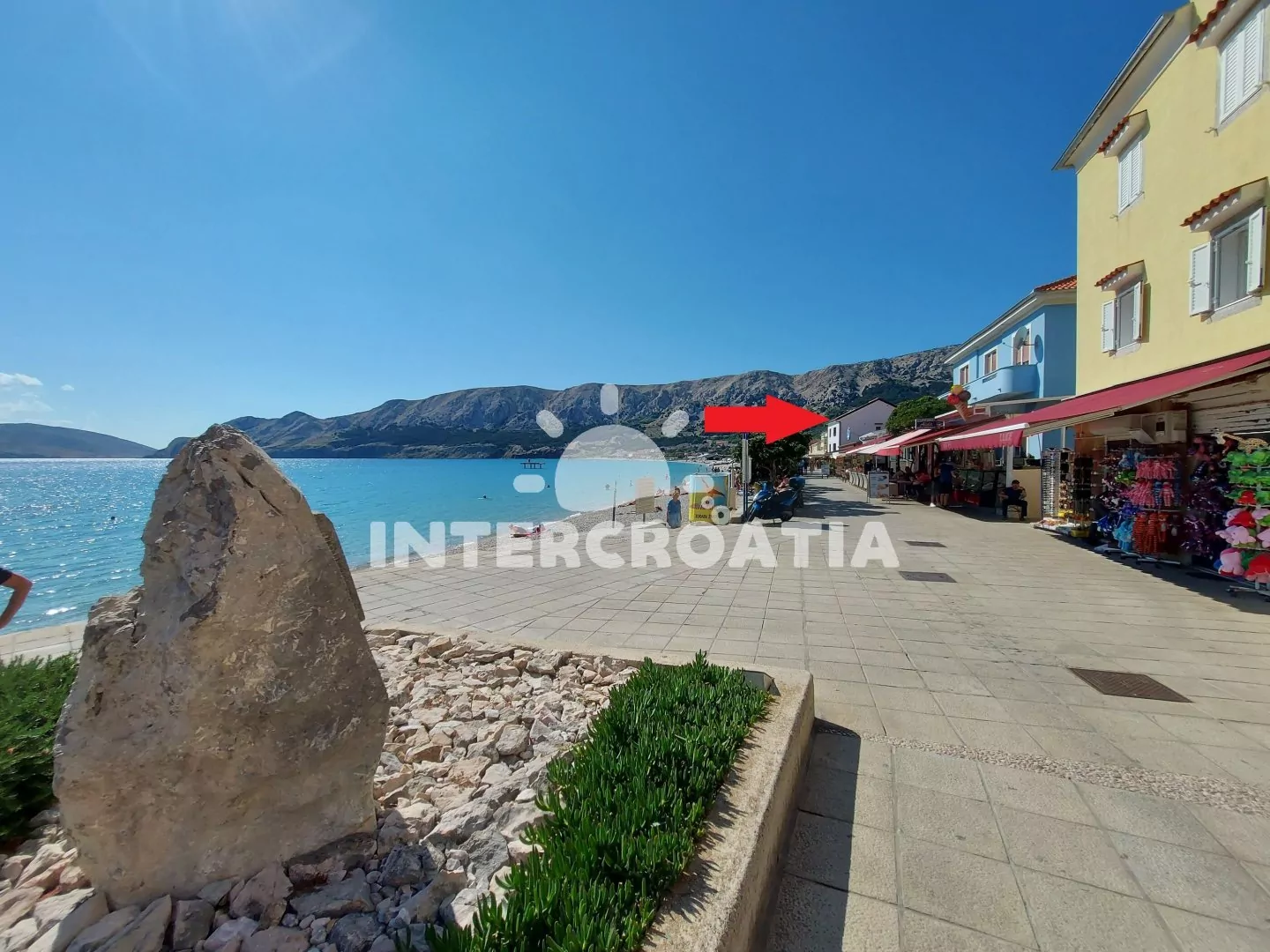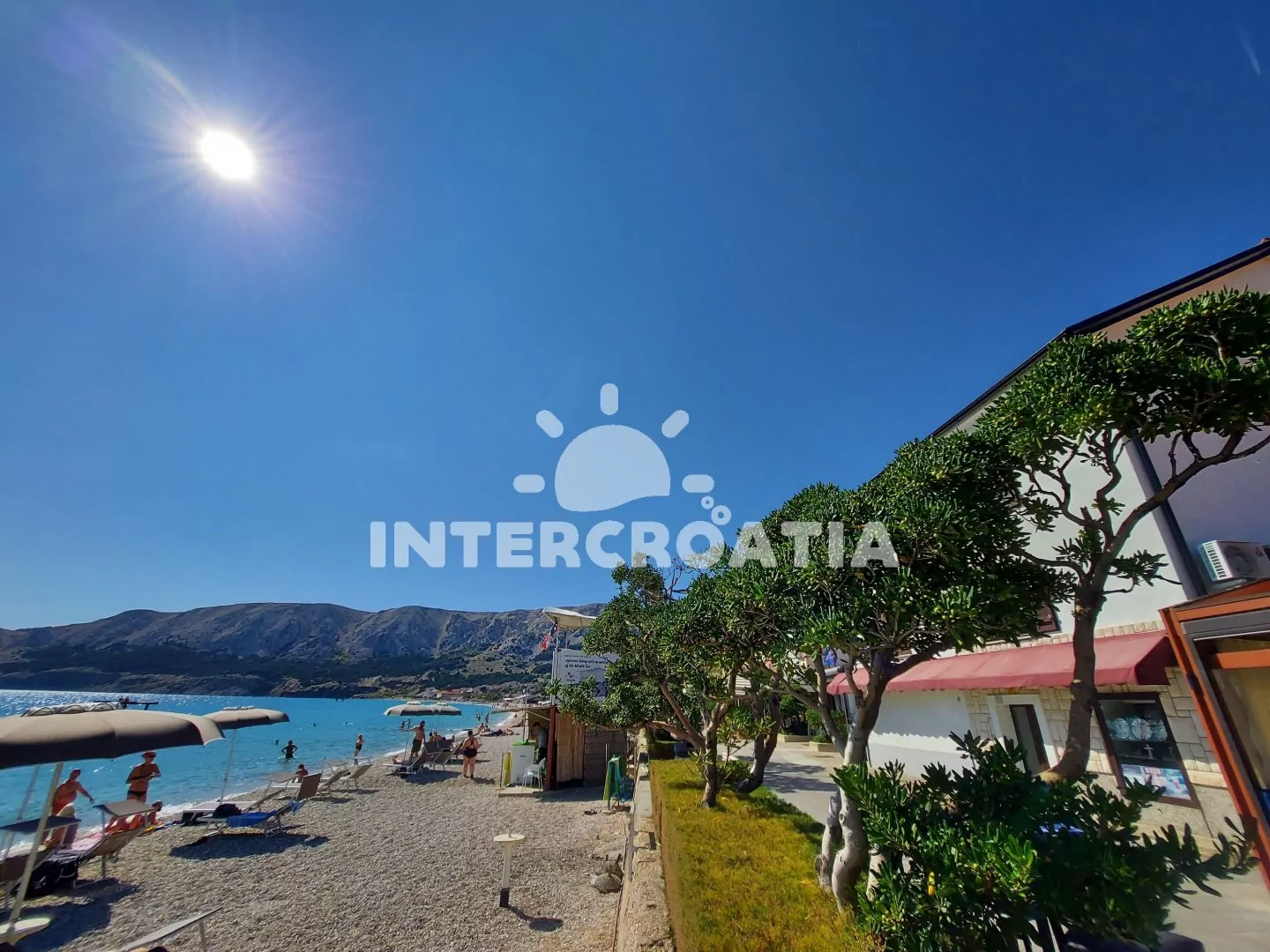 Vzdálenosti: Moře 10 m, pláž (oblázková) 10 m, centrum 50 m, market 50 m, pošta 50 m, lékárna 50 m, nemocnice 50 m, restaurace 50 m, muzeum 50 m, směnárna 50 m, banka 50 m, přístav 20 km, potápěčský klub 200 m, půjčovna motorových člunů 500 m, půjčovna kol 500 m, tenisové kurty 150 m, minigolf 150 m, vnitřní bazén 150 m, diskotéka 150 m, bar 50 m, čerpací stanice 20 km, trajekt (Valbiska-Krk) 30 km, letiště (Rijeka) 40 km.