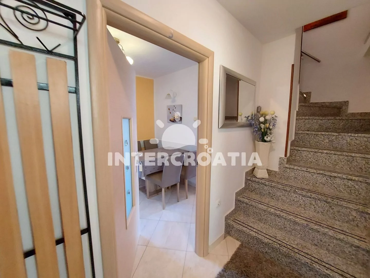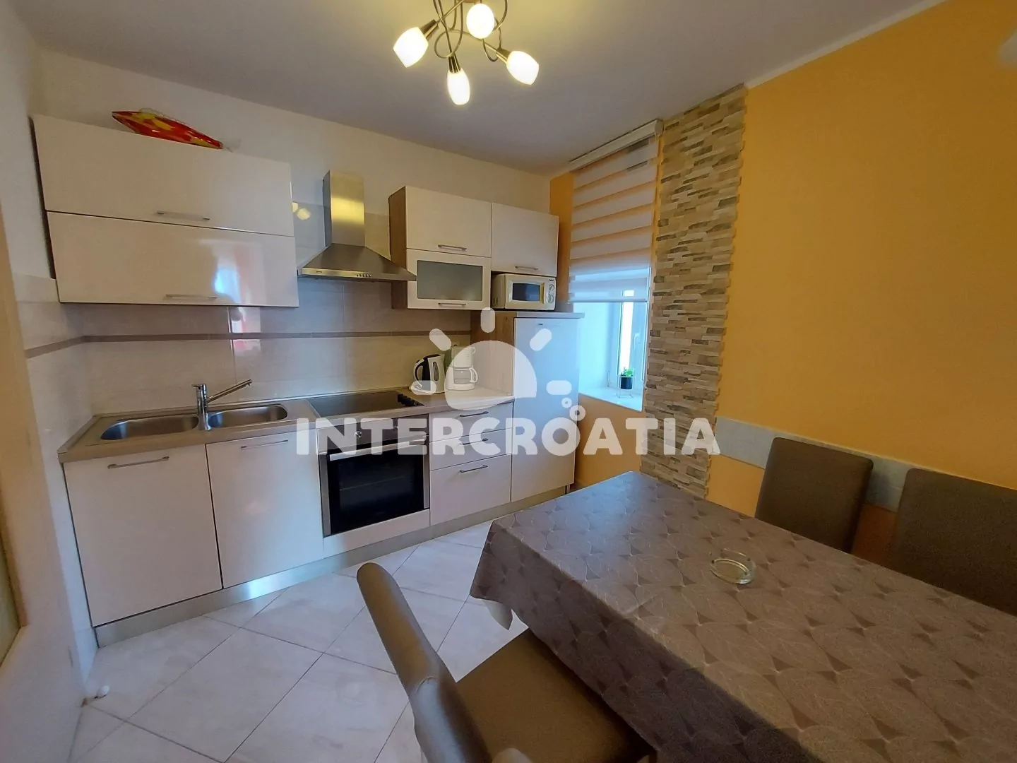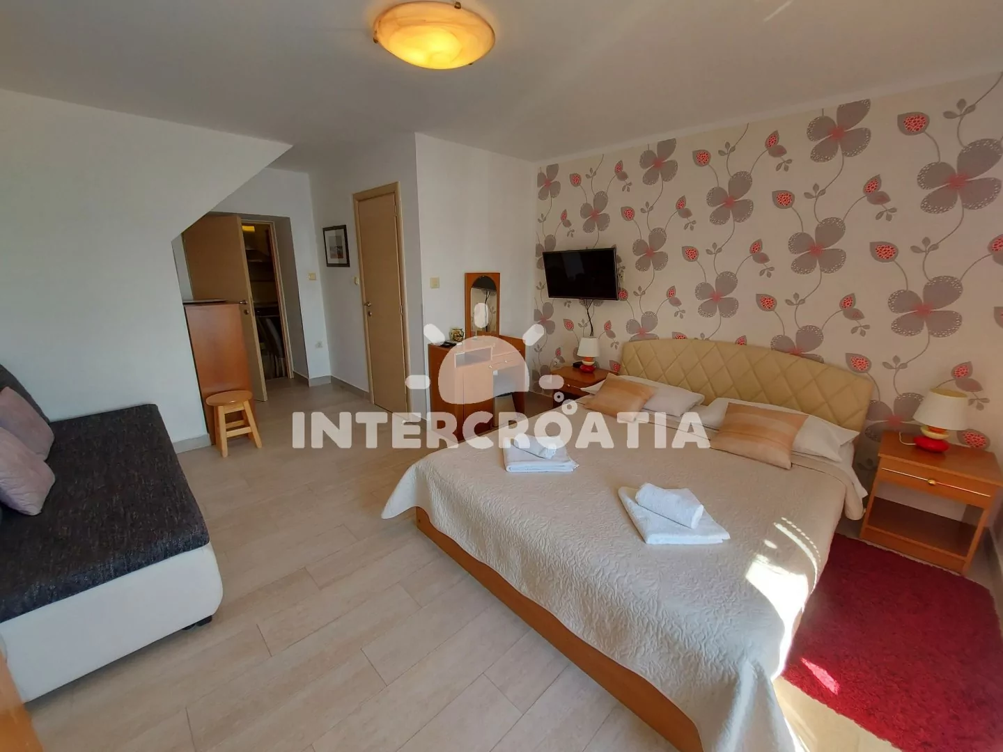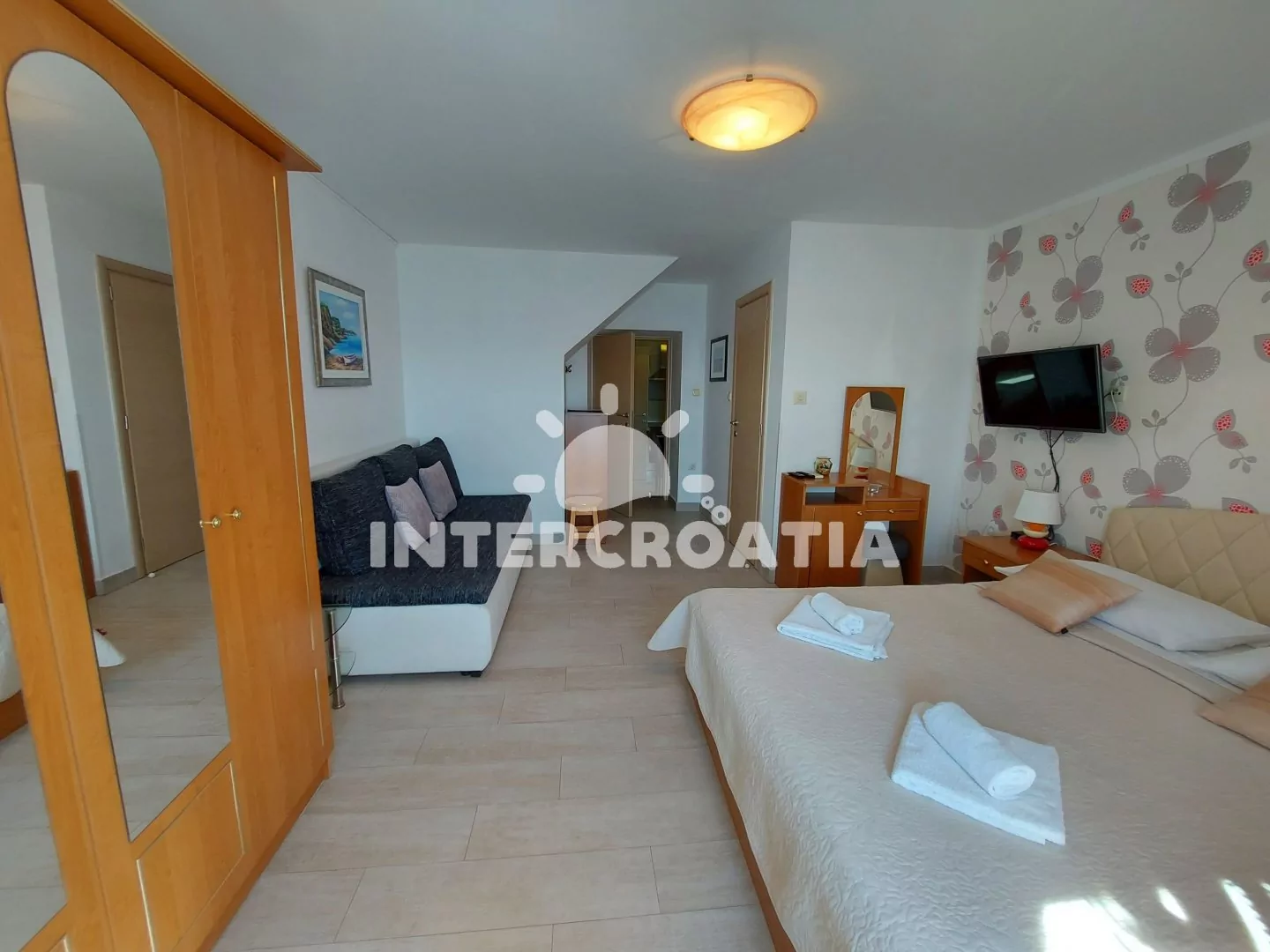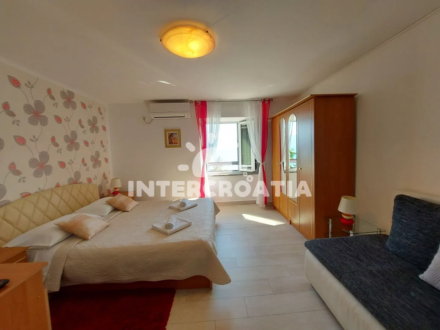 Moderně zařízený apartmán s výhledem na moře, pro 2 až 3 osoby se nachází v prvním patře domu. Kuchyň je vybavena jídelním stolem pro 4 osoby. Kuchyňská linka se sklokeramickou varnou deskou, digestoří, vestavěnou troubou, mikrovlnnou troubou, rychlovarnou konvicí, kávovarem, toustovačem, nádobím a lednicí s mrazákem. Ložnice s jedním dvoulůžkem, rozložitelnou pohovkou (extra lůžko pro 1 osobu), televizí se satelitním programem a klimatizací. Koupelna se sprchovým koutem, umyvadlem, fénem a wc. Hostům je k dispozici: sejf a parkování 50 - 150 m od domu.