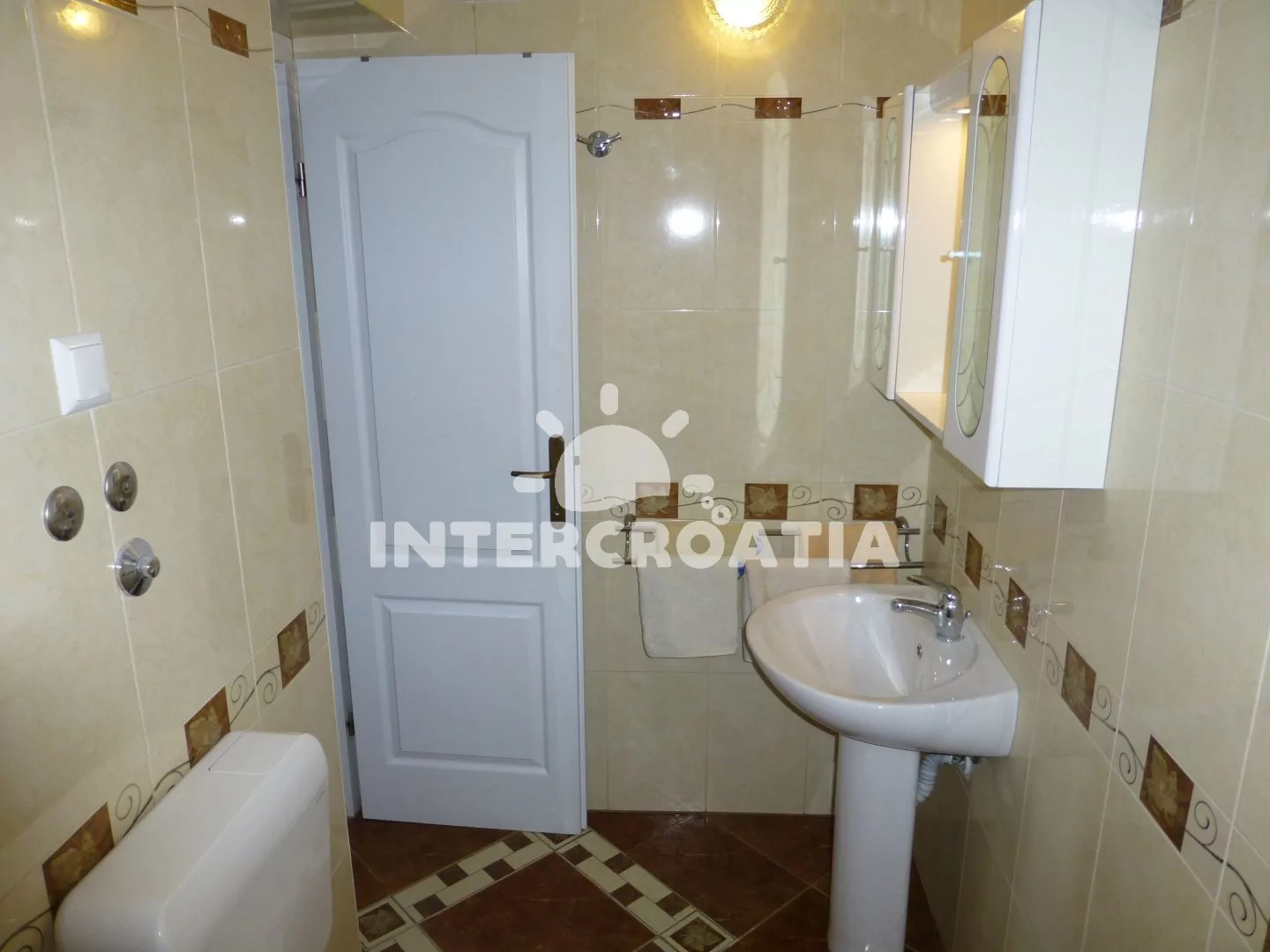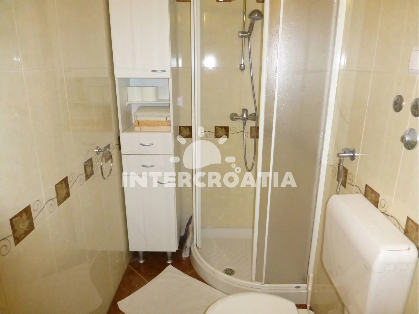 Apartmán (44 m2) s balkonem, posezením a výhledem na moře se nachází ve zvýšeném přízemí domu. Apartmán má 1 ložnici a je vhodný pro 2 až 4 osoby. Obývací pokoj je spojený s kuchyní. Kuchyňská linka je vybavena sporákem s troubou, digestoří, myčkou na nádobí, rychlovarnou konvicí, mikrovlnnou troubou, toustovačem, nádobím a lednicí s mrazákem. Obývací pokoj je vybavený jídelním stolem pro 4 osoby, pohovkou (rozložitelná na extra lůžko pro 2 osoby), televizí se satelitním programem, klimatizací a vstupem na balkon. Ložnice s jedním dvoulůžkem. Koupelna se sprchovým koutem, umyvadlem, fénem a wc.
