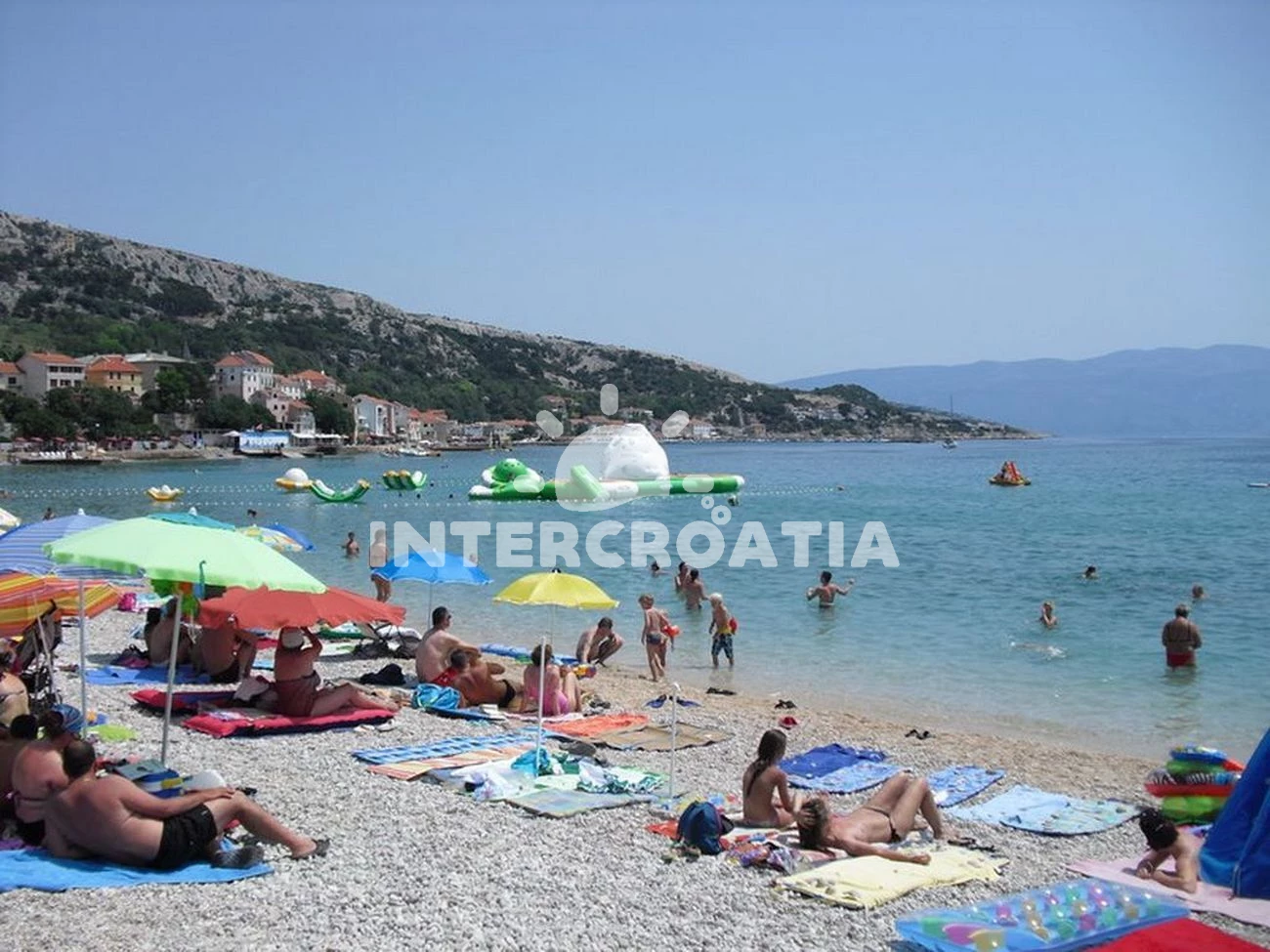 Vzdálenosti: Moře 800 m, pláž 950 m (písčitá a oblázková), veřejná doprava 300 m, restaurace 500 m, bar 500 m, supermarket 500 m, banka 1 km, potápění 1 km, muzeum 1 km, pošta 1 km, směnárna 1 km, ambulance 1 km, lékárna 1 km, centrum 1 km, půjčovna kol 1 km, diskotéka 1 km, mini golf 1 km, tenisové kurty 1 km, půjčovna motorových člunů 1 km, marina 1,5 km, kotviště pro čluny 1,5 km, čerpací stanice 15 km, trajekt (Valbiska (Krk)) 20 km, letiště (Rijeka) 40 km,