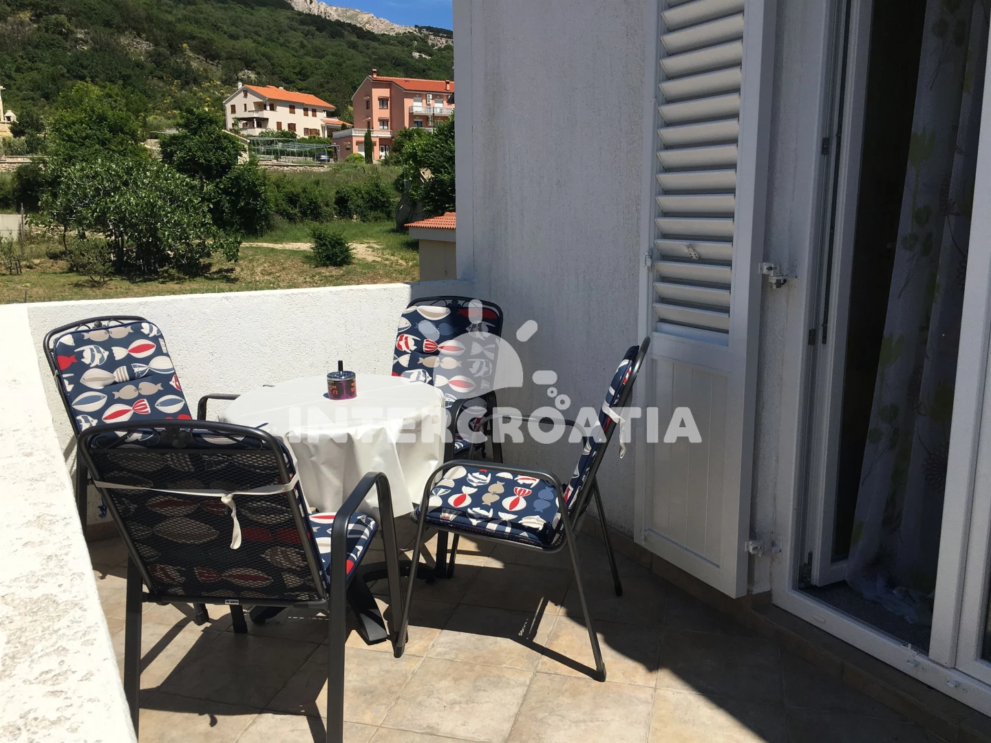 Vzdálenosti: Moře 800 m, pláž 950 m (písčitá a oblázková), veřejná doprava 300 m, restaurace 500 m, bar 500 m, supermarket 500 m, banka 1 km, potápění 1 km, muzeum 1 km, pošta 1 km, směnárna 1 km, ambulance 1 km, lékárna 1 km, centrum 1 km, půjčovna kol 1 km, diskotéka 1 km, mini golf 1 km, tenisové kurty 1 km, půjčovna motorových člunů 1 km, marina 1,5 km, kotviště pro čluny 1,5 km, čerpací stanice 15 km, trajekt (Valbiska (Krk)) 20 km, letiště (Rijeka) 40 km,