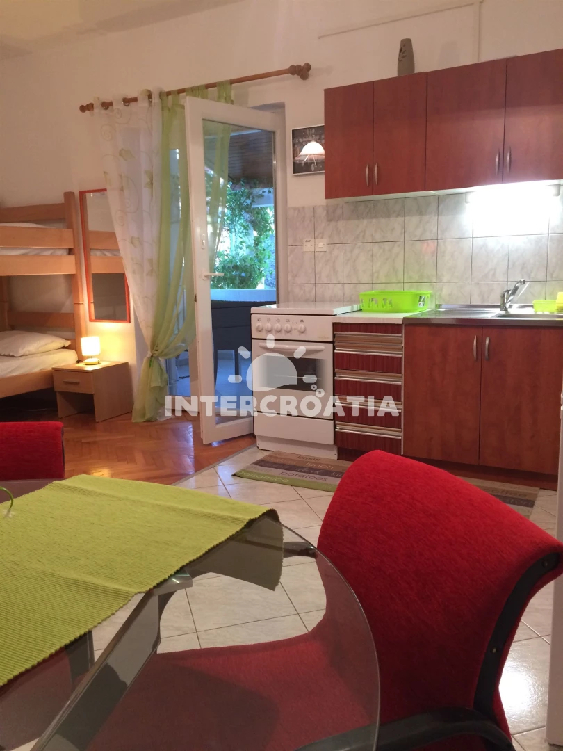 Apartmán (30 m2) typu studio s terasou. Nachází se v přízemí objektu. Kuchyňská linka je vybavena varnou deskou, troubou, kávovarem, toustovačem, mikrovlnnou troubou, rychlovarnou konvicí, nádobím,…