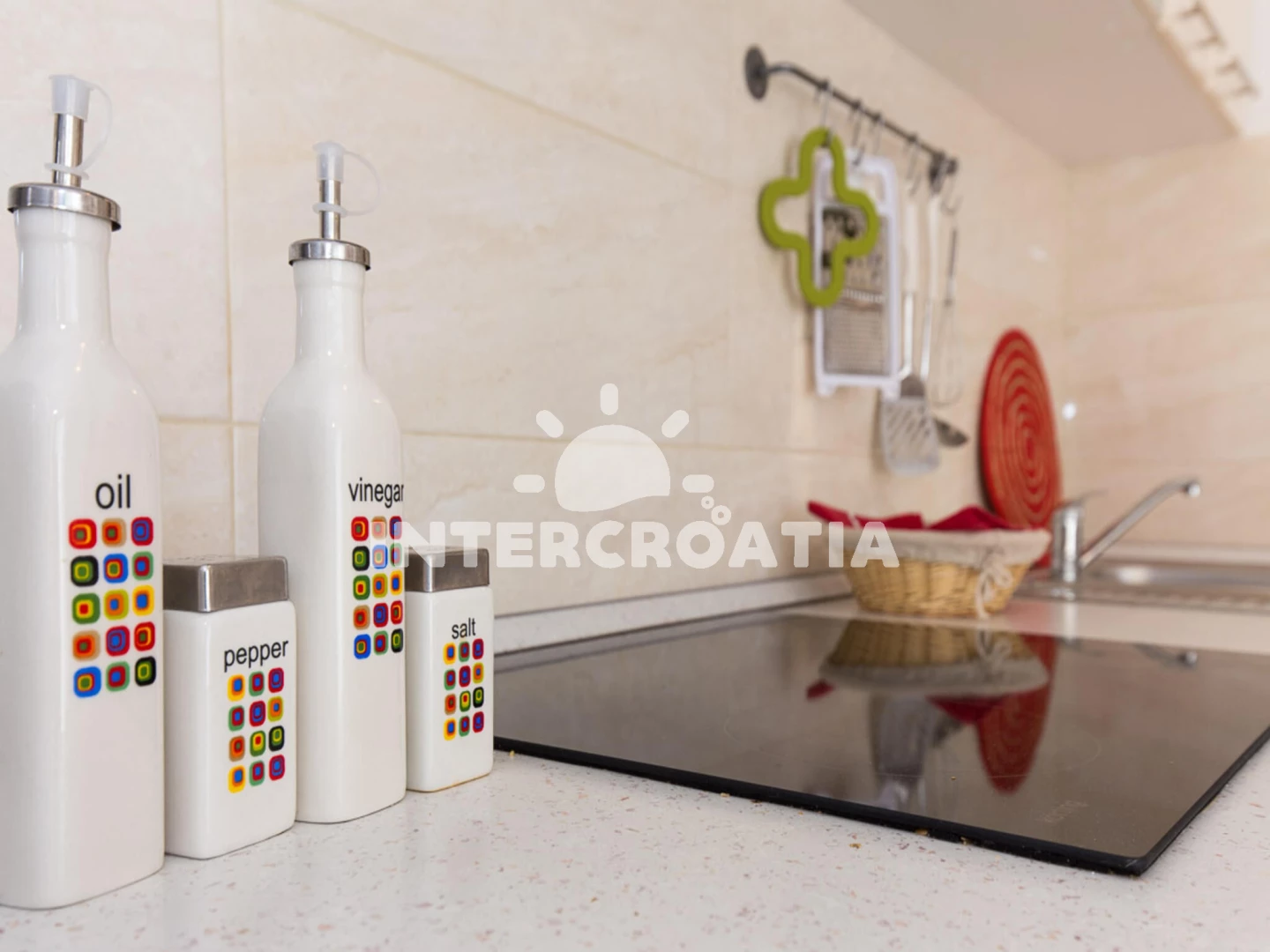 Vzdálenosti: Moře 50 m, pláž 50 m (oblázková a betonové desky), bar 50 m, restaurace 50 m, supermarket 50 m, centrum 100 m, letiště 7 km, diskotéka 10 km, trajekt (Valbiska (Krk)) 14 km,