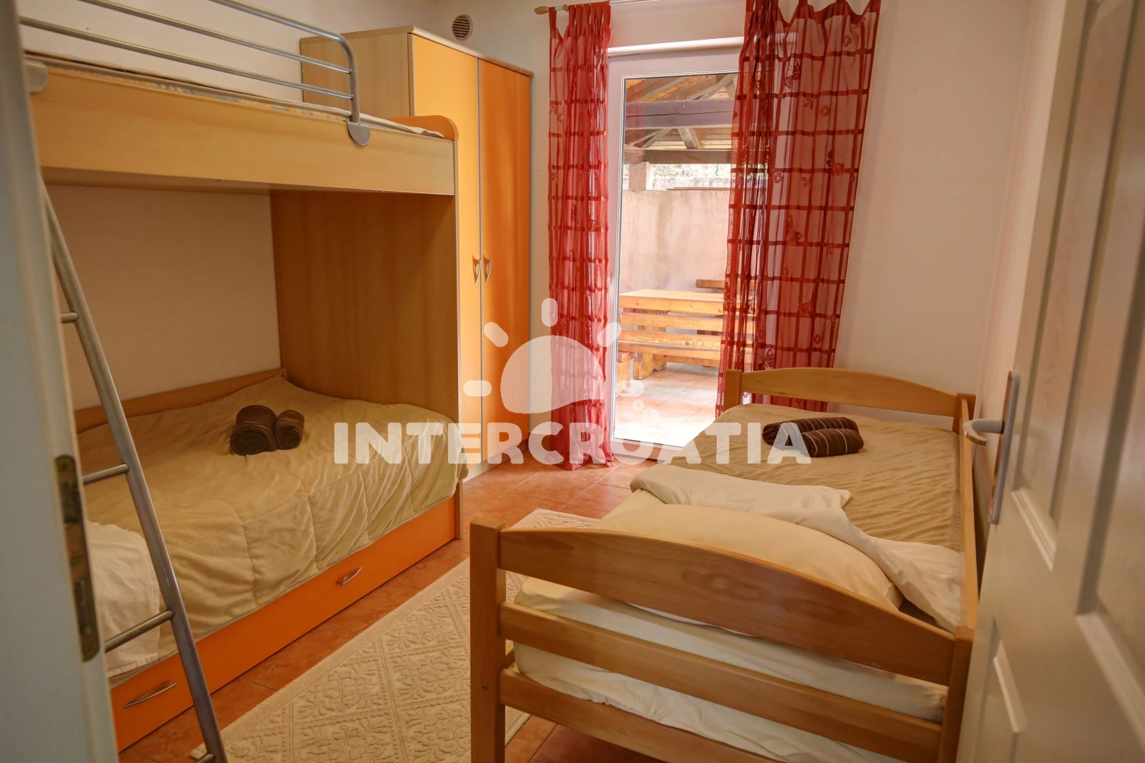 Apartmán se nachází 150 m od moře a pláže. Pláž je písčitá a oblázková. U objektu je k dispozici společná zahrada s posezením a grilem. Parkování je před domem.