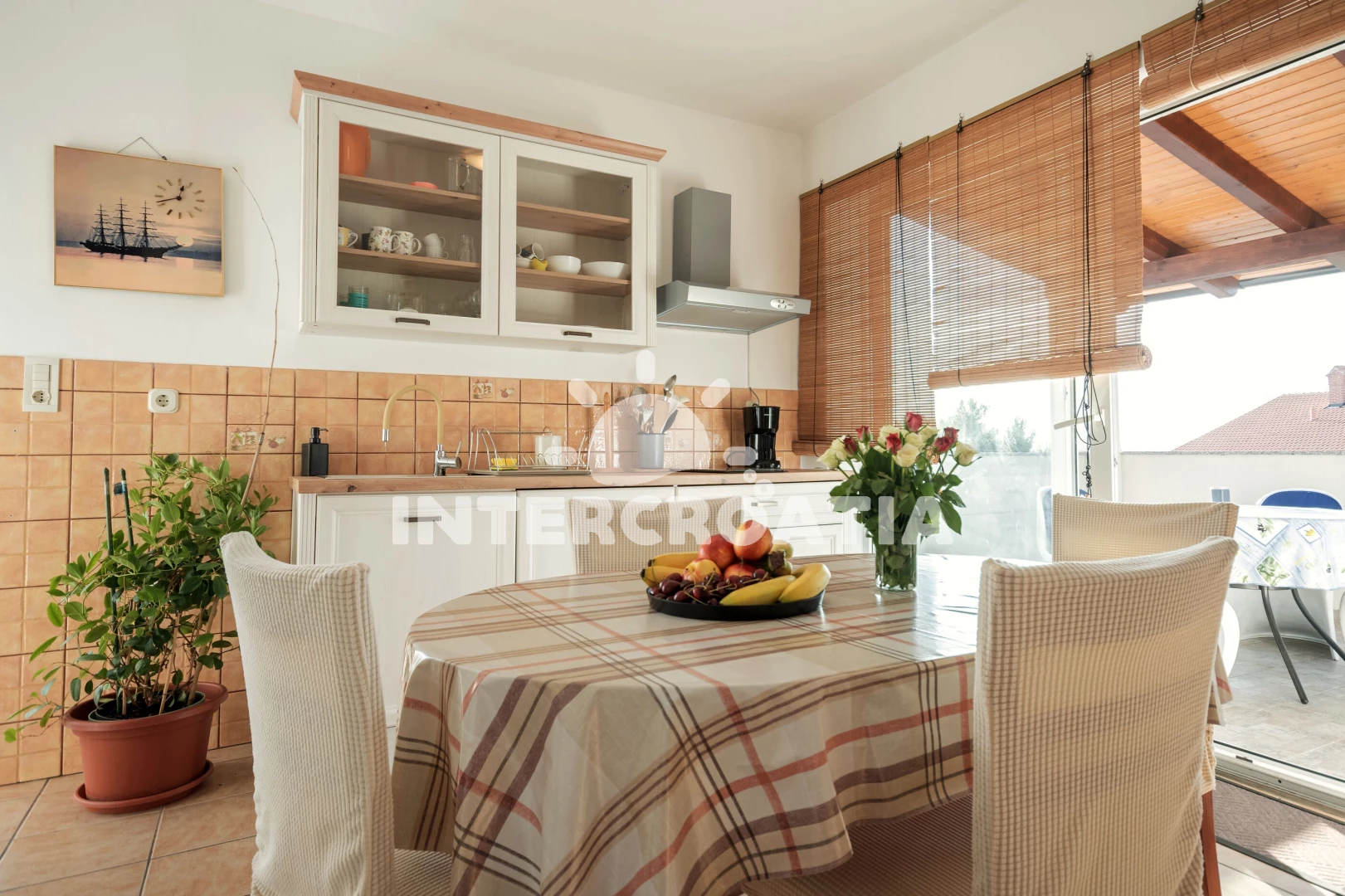 Vzdálenosti: Moře 150 m, pláž 150 m (oblázky), centrum 350 m, supermarket 350 m, restaurace 350 m, veřejná doprava 5 km, čerpací stanice 5 km, letiště (Rijeka) 20 km, trajekt (Merag) 20 km,