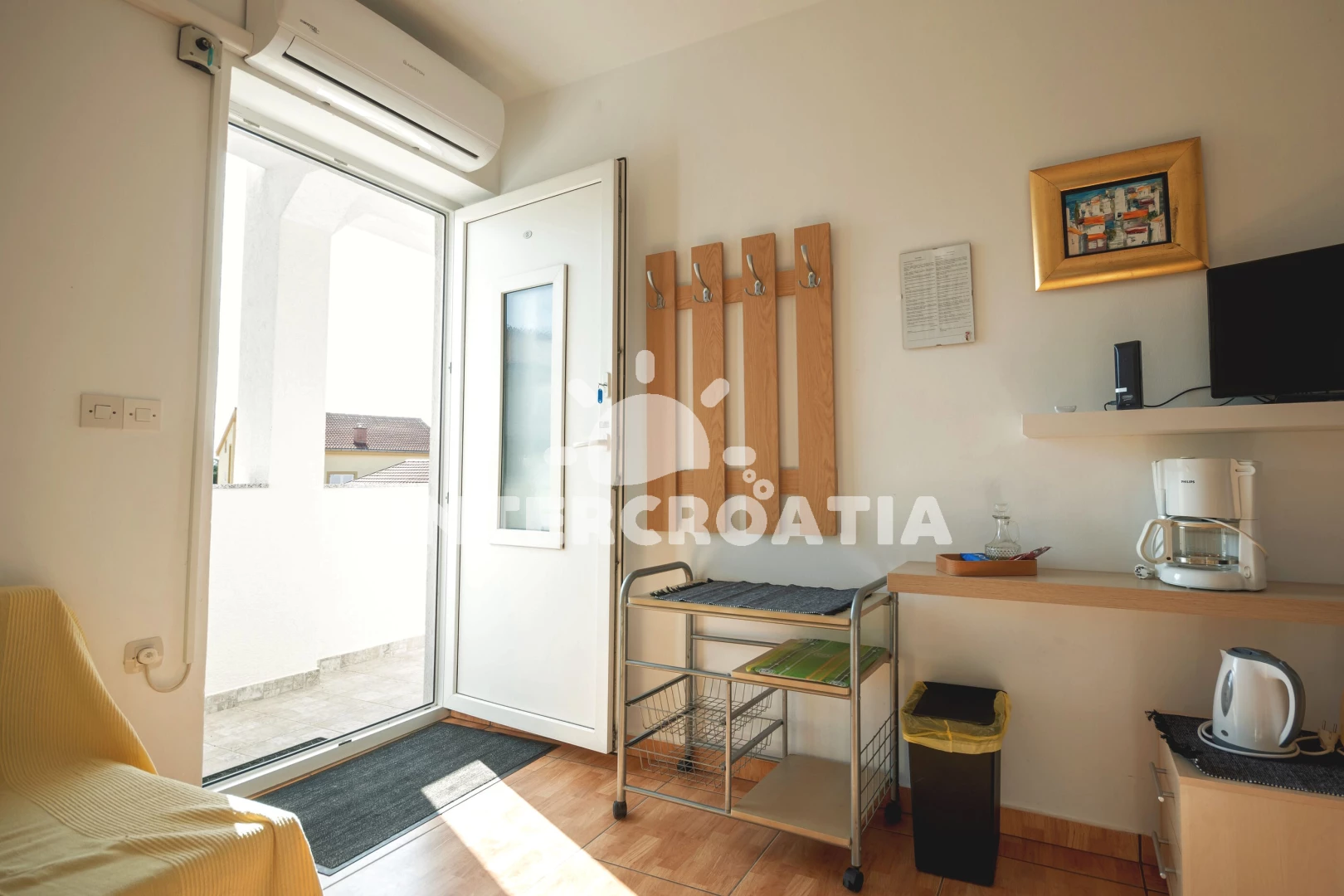 Vzdálenosti: Moře 150 m, pláž 150 m (oblázky), centrum 350 m, supermarket 350 m, restaurace 350 m, veřejná doprava 5 km, čerpací stanice 5 km, letiště (Rijeka) 20 km, trajekt (Merag) 20 km,