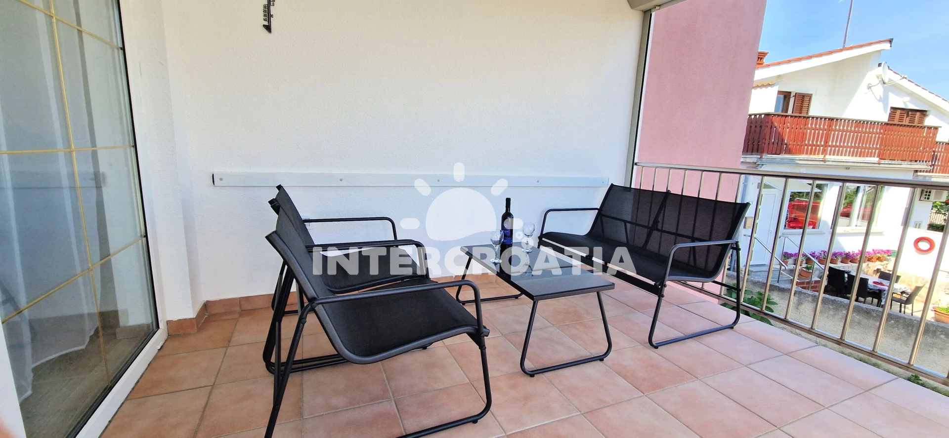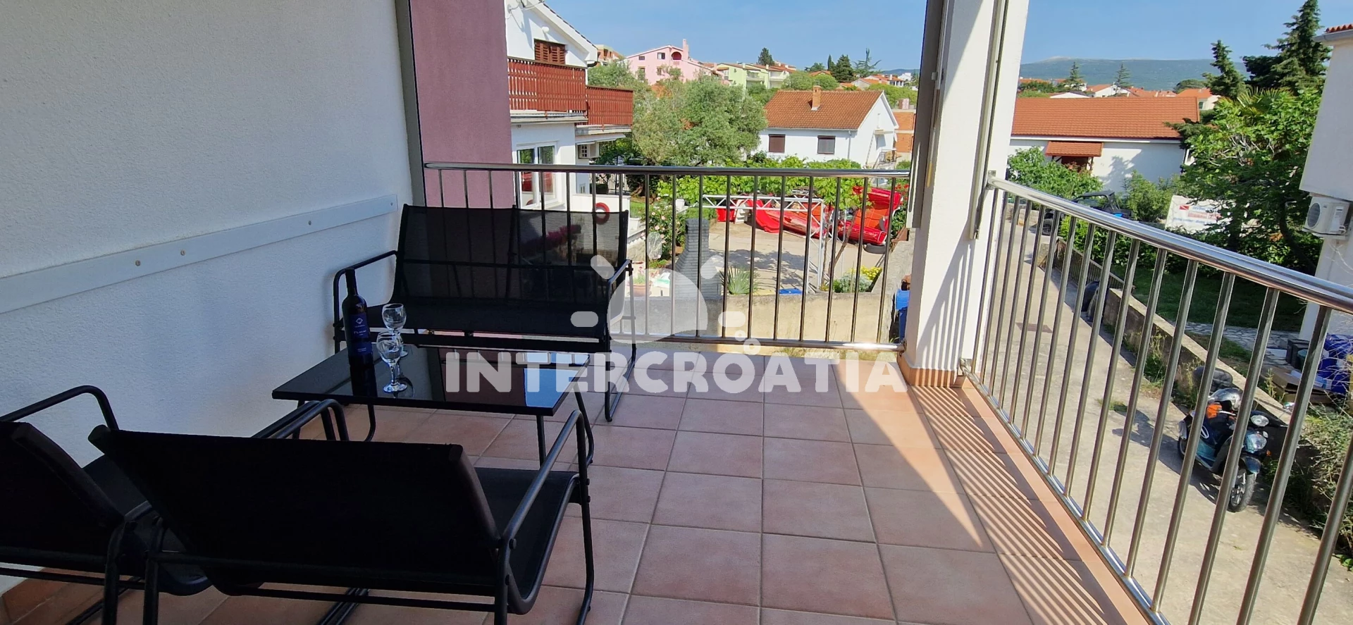 Vzdálenosti: Moře 500 m, pláž 600 m (betonové desky), restaurace 500 m, centrum 500 m, bar 700 m, supermarket 700 m, lékárna 800 m, veřejná doprava 1,2 km, banka 1,2 km, pošta 1,2 km, ambulance 1,5 km, trajekt (Valbiska (Krk)) 12 km, letiště (Rijeka) 25 km,