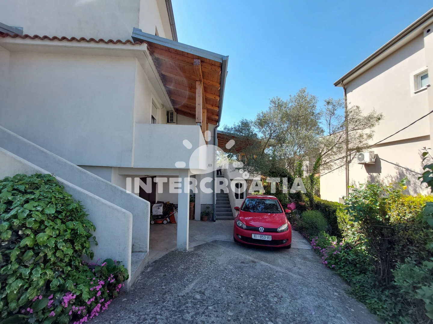 Apartmán se nachází 250 m od moře a pláže. Pláž je oblázková a betonové desky. U objektu je k dispozici společná zahrada s posezením a grilem. Parkování je před domem.