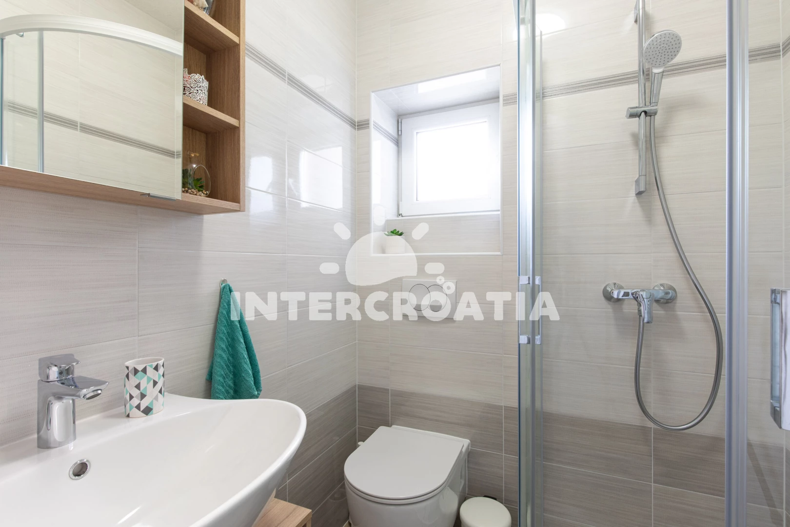 Apartmán se nachází 450 m od moře a pláže. Pláž je oblázková a betonové desky. U objektu je k dispozici společná zahrada s posezením a grilem. Parkování je před domem.