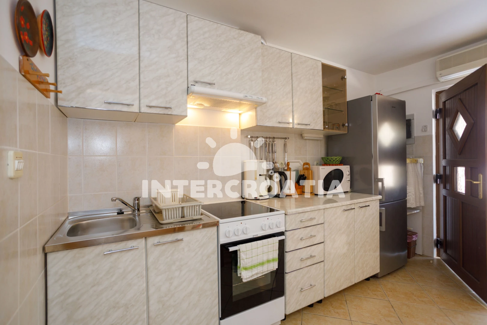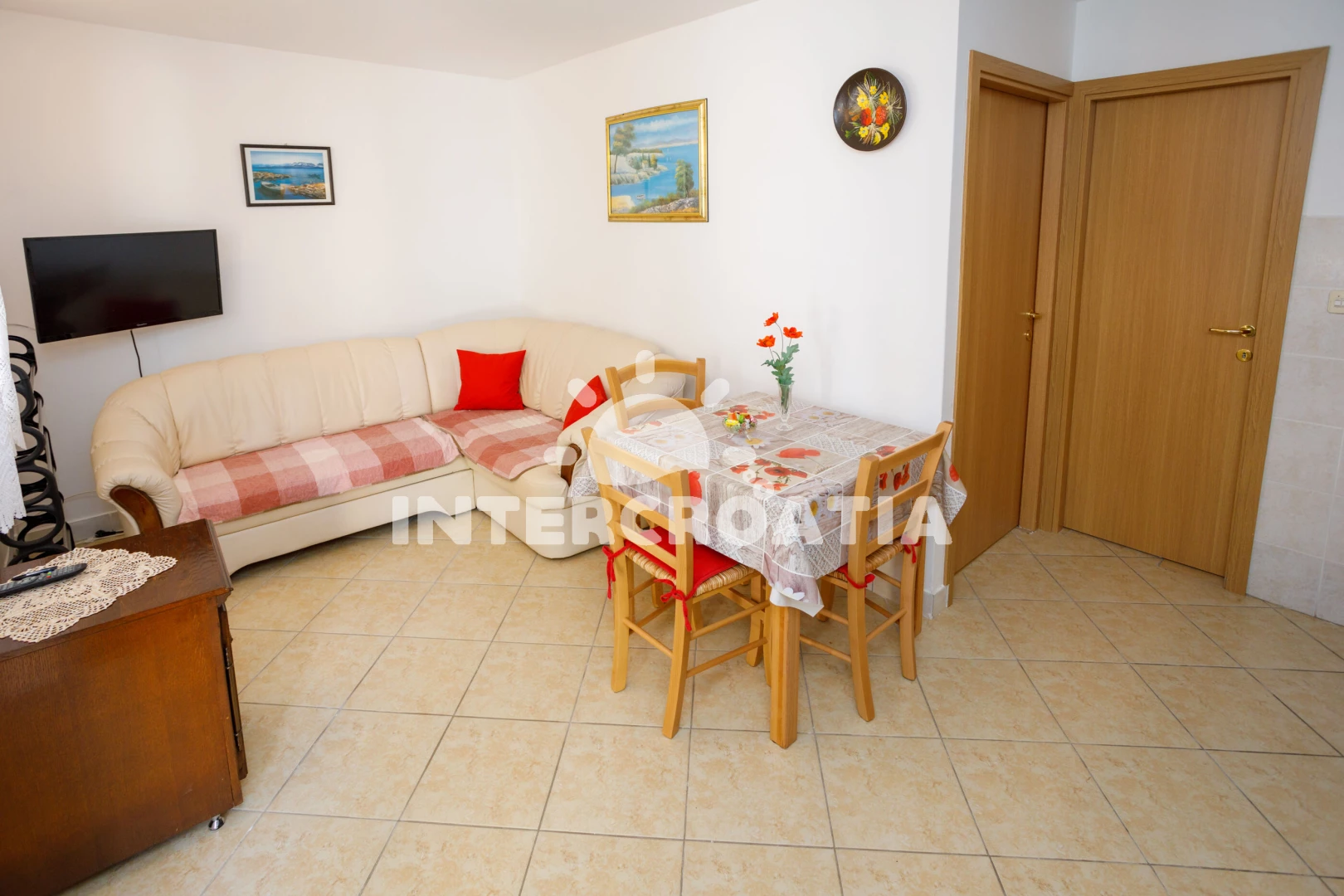 Apartmán se nachází 700 m od moře a pláže. Pláž je skalnatá, oblázková a betonové desky. U objektu je k dispozici společná zahrada s posezením a grilem. Parkování je před domem.
