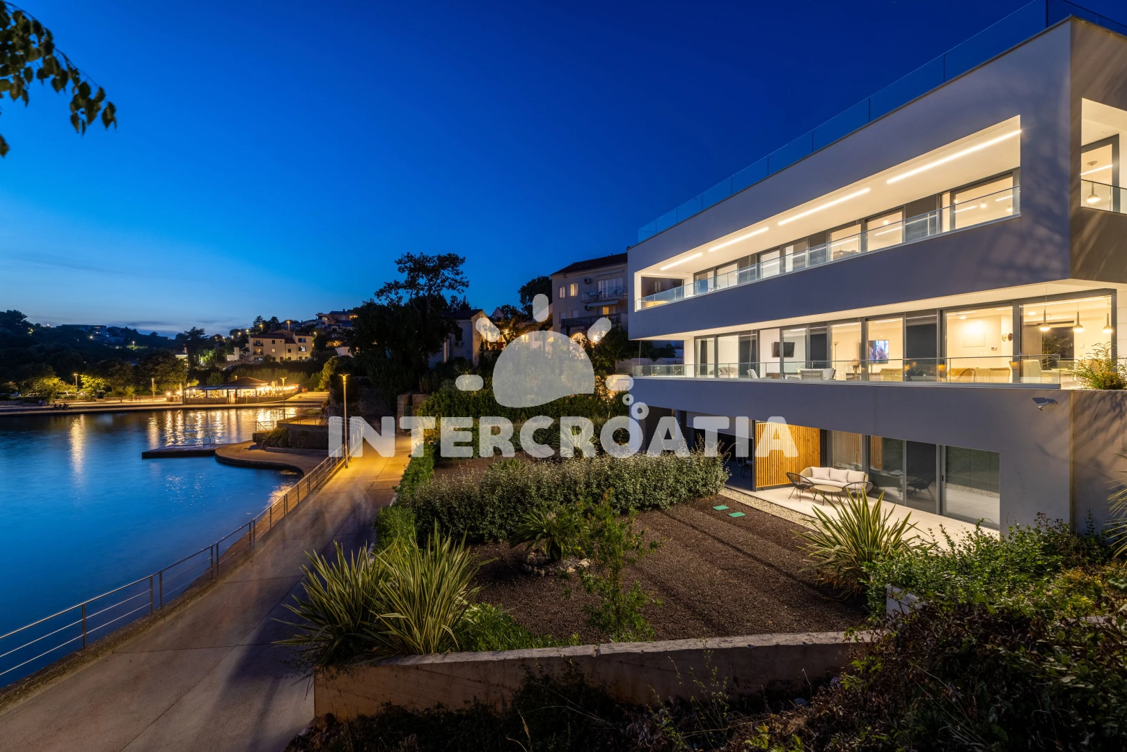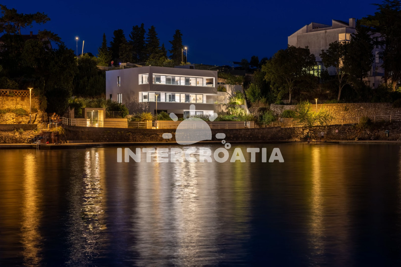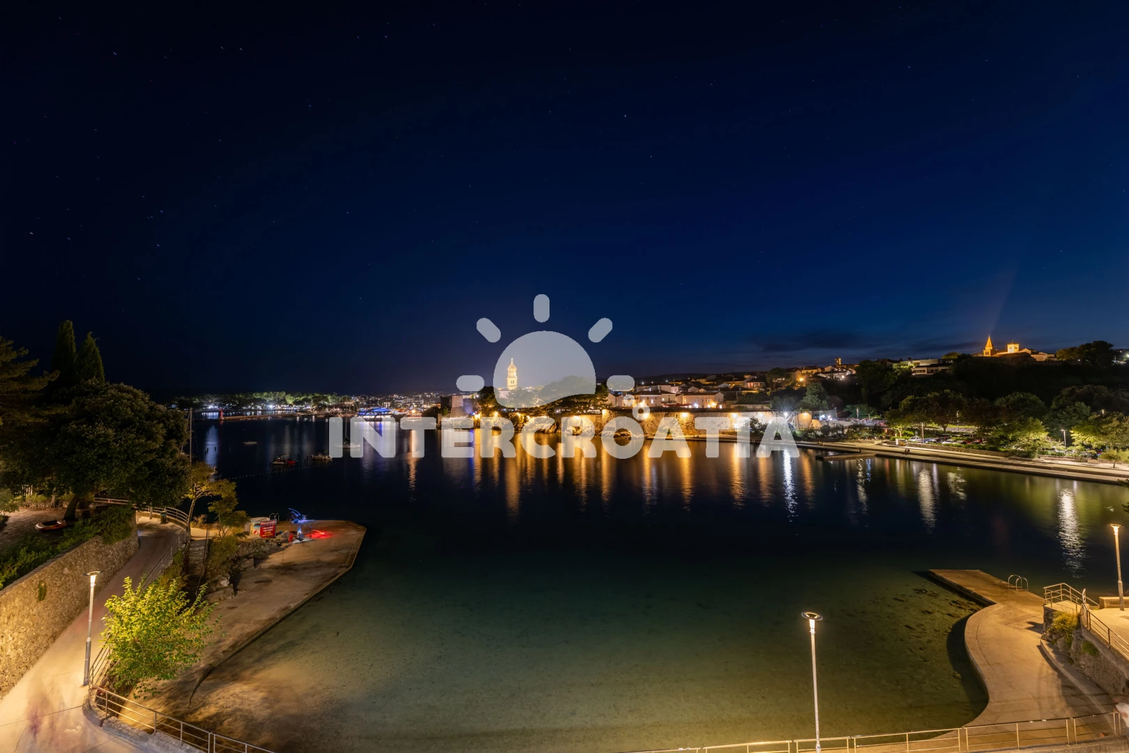 Vzdálenosti: Moře 50 m, pláž 60 m (betonové desky), bar 150 m, restaurace 200 m, supermarket 400 m, půjčovna kol 400 m, lékárna 600 m, centrum 700 m, pošta 700 m, banka 800 m, veřejná doprava 1 km, ambulance 1 km, trajekt (Valbiska (Krk)) 13 km, letiště (Rijeka) 26 km,