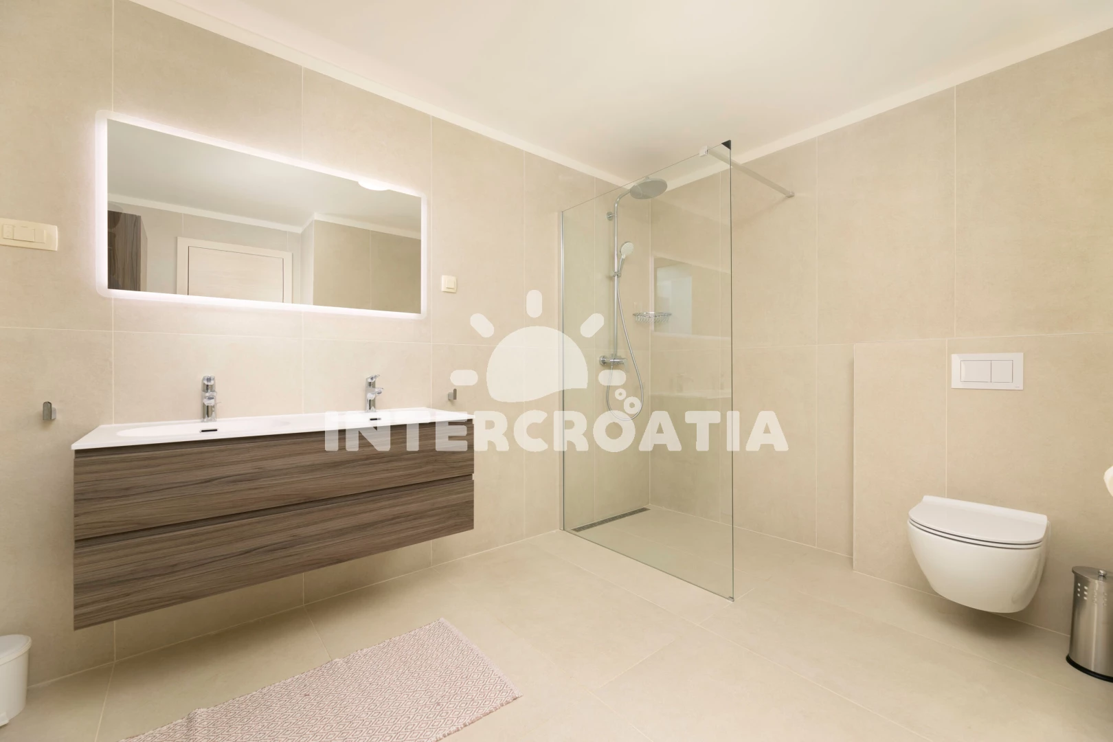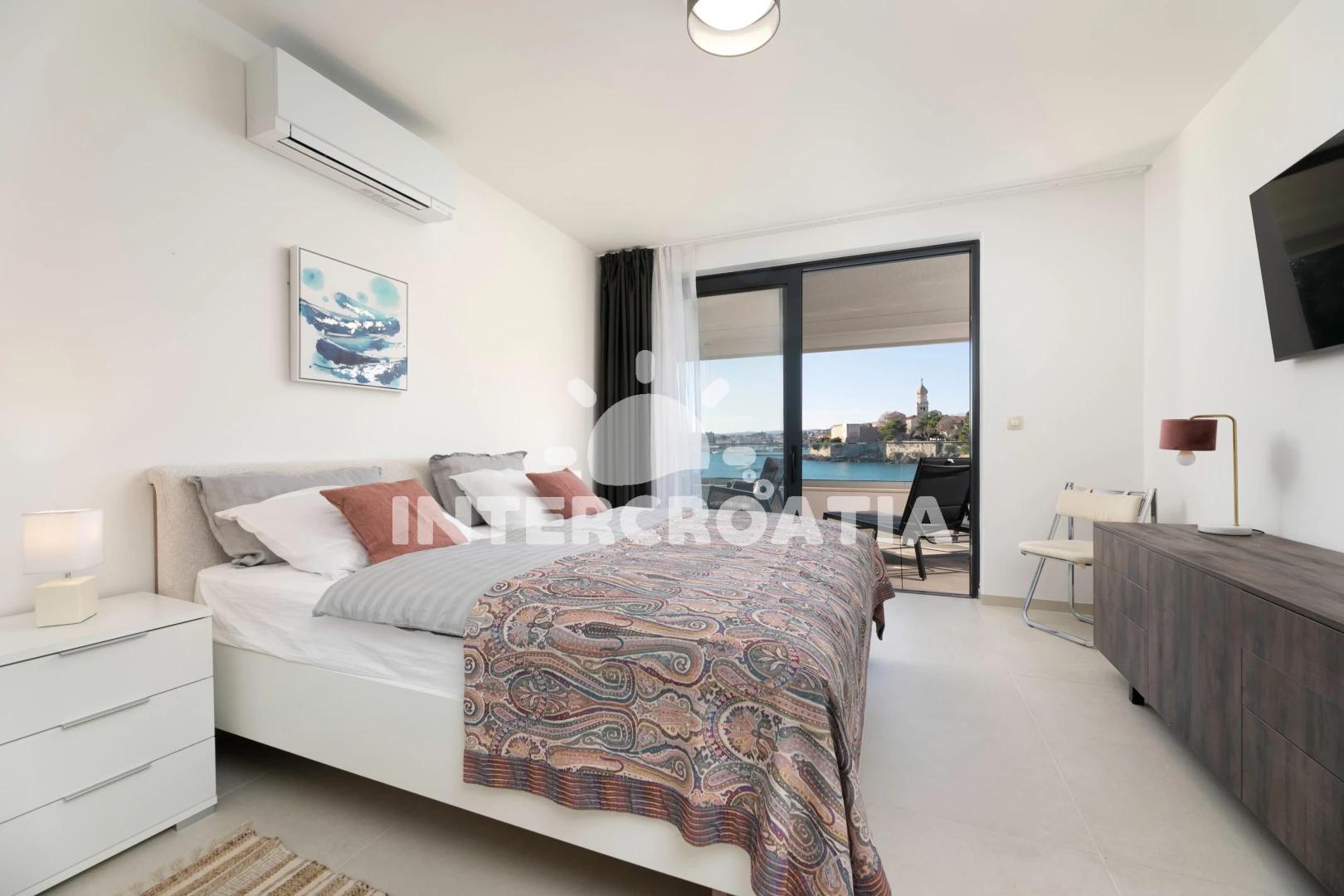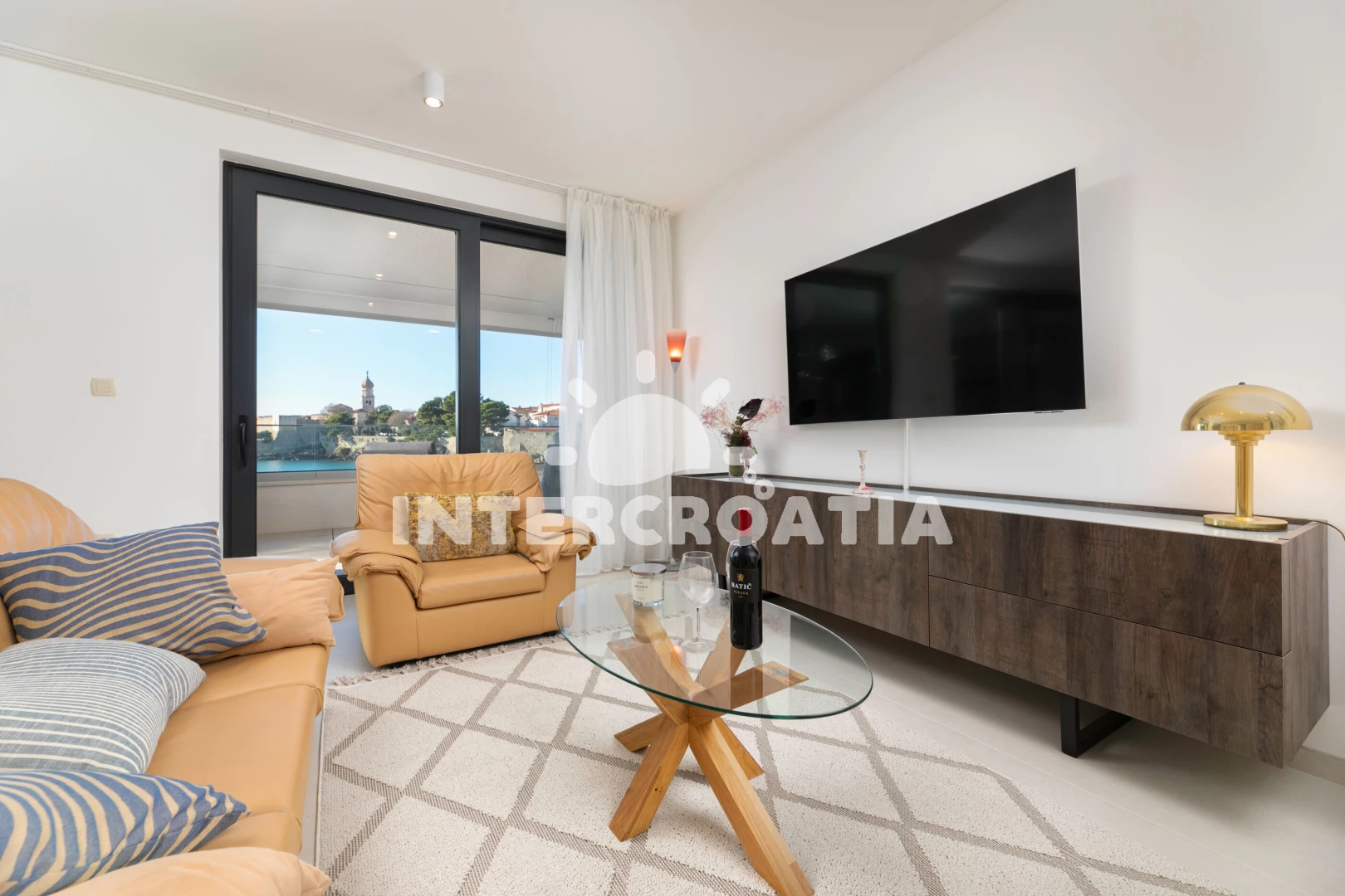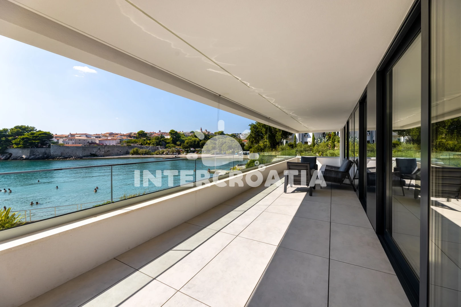 Vzdálenosti: Moře 50 m, pláž 60 m (betonové desky), bar 150 m, restaurace 200 m, supermarket 400 m, půjčovna kol 400 m, lékárna 600 m, centrum 700 m, pošta 700 m, banka 800 m, veřejná doprava 1 km, ambulance 1 km, trajekt (Valbiska (Krk)) 13 km, letiště (Rijeka) 26 km,