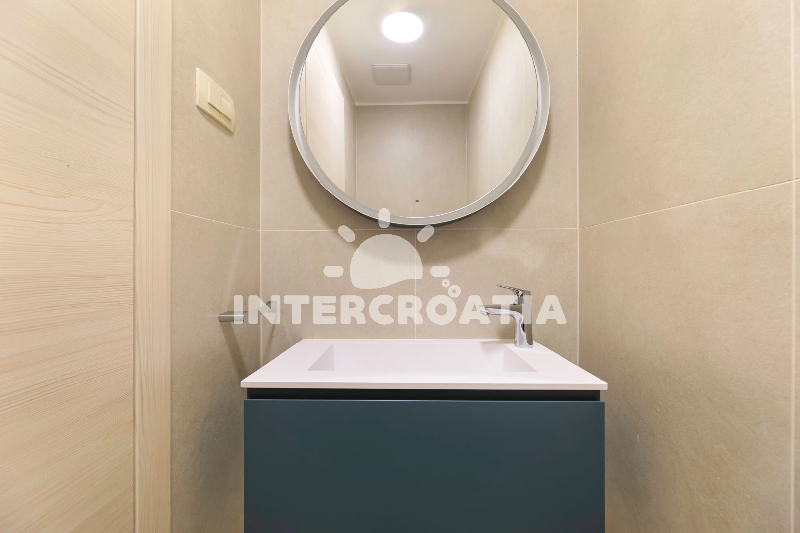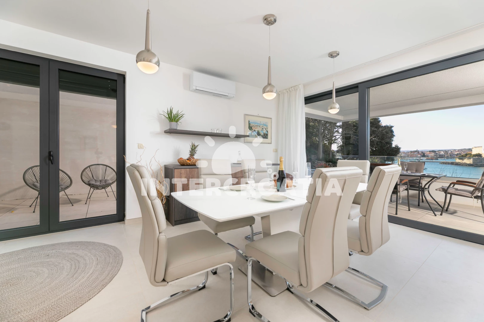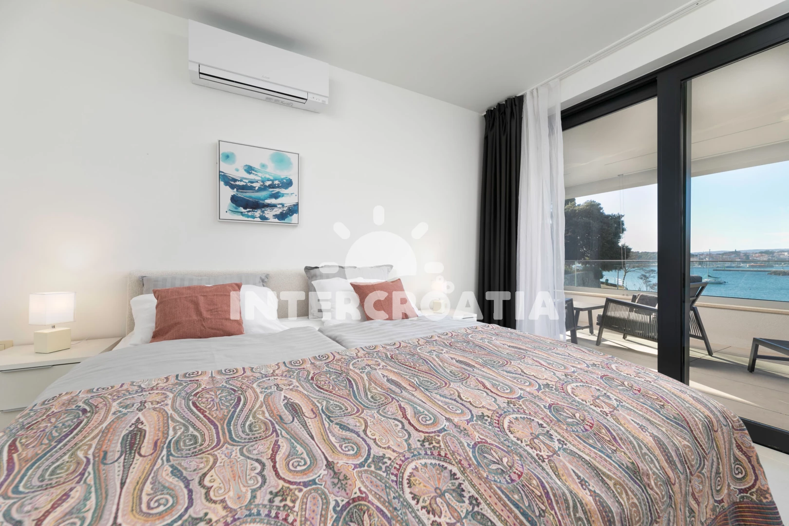 Apartmán (116 m2) s výhledem na moře. Nachází se v 1. patře objektu. Apartmán má 2 ložnice a je vhodný pro až 4 osoby. Kuchyňská linka je vybavena varnou deskou, troubou, kávovarem, myčkou na nádobí, mikrovlnnou troubou, rychlovarnou konvicí, nádobím, lednicí, mrazákem. K dispozici televize se satelitním programem. První ložnice s dvoulůžkem. Druhá ložnice s dvoulůžkem. První koupelna se sprchovým koutem, umyvadlem, fénem a WC. Druhá koupelna se sprchovým koutem, umyvadlem, fénem a WC. Dále samostatné WC.