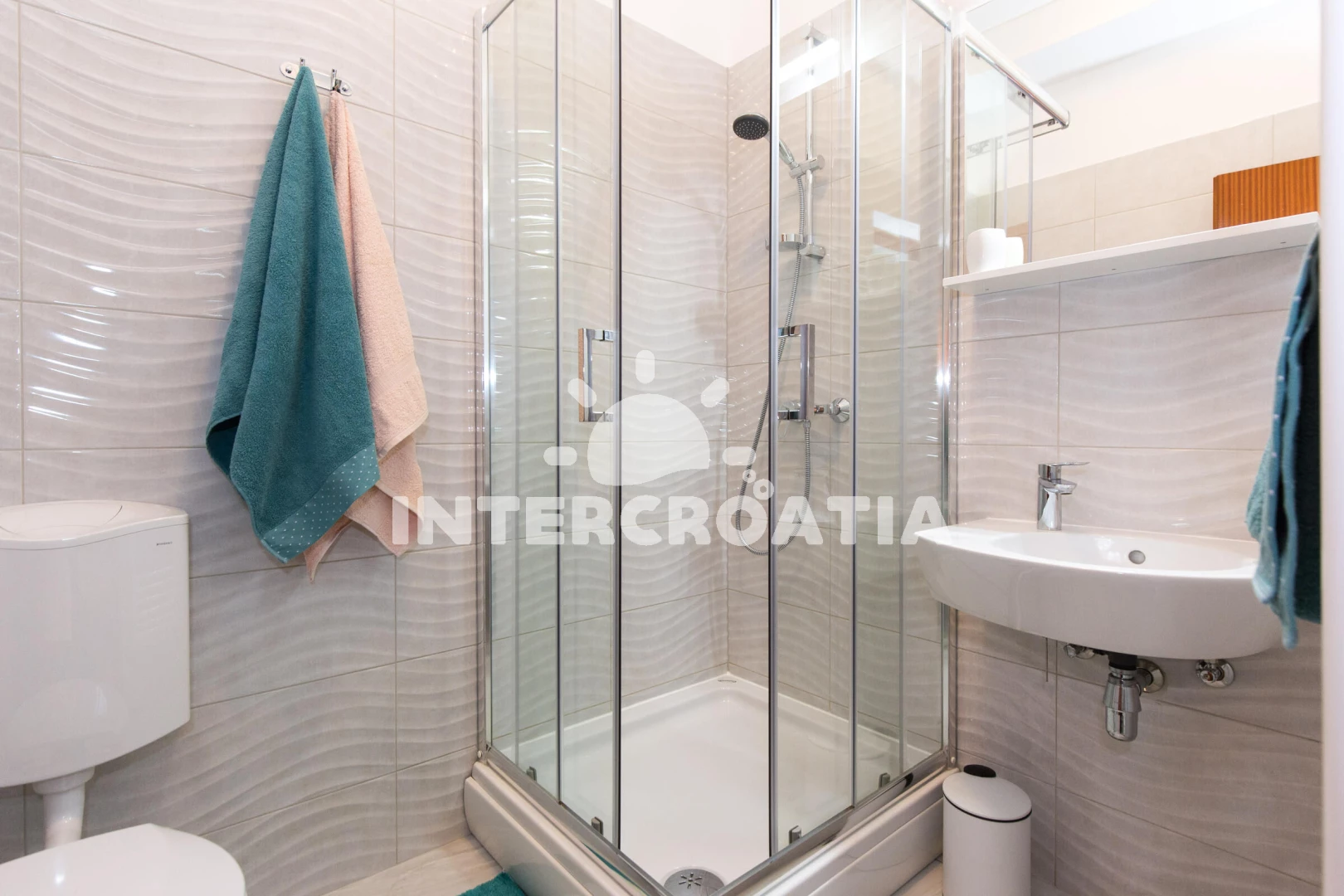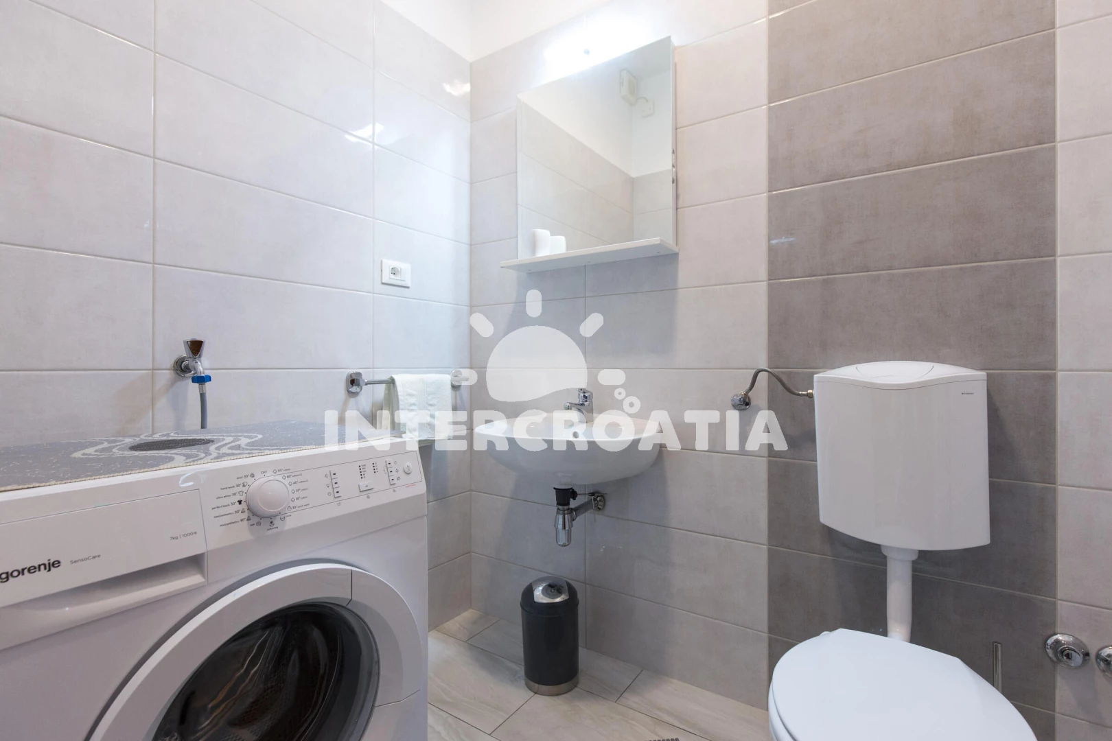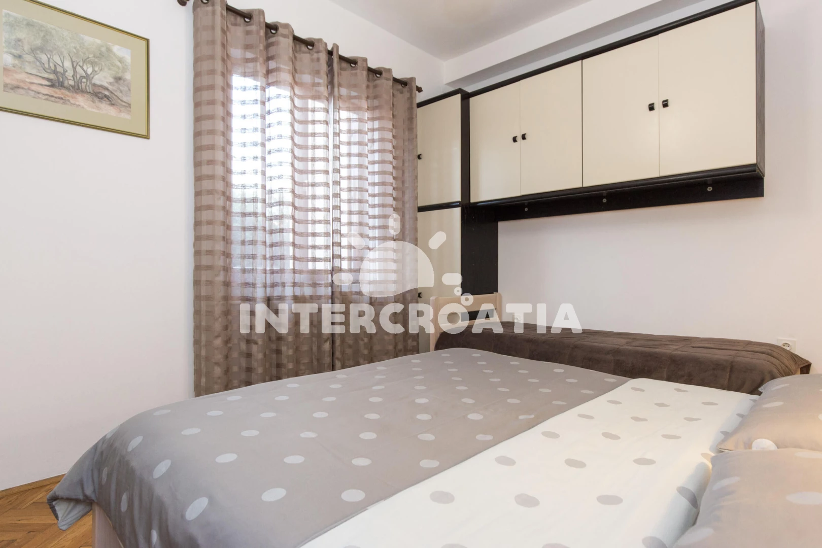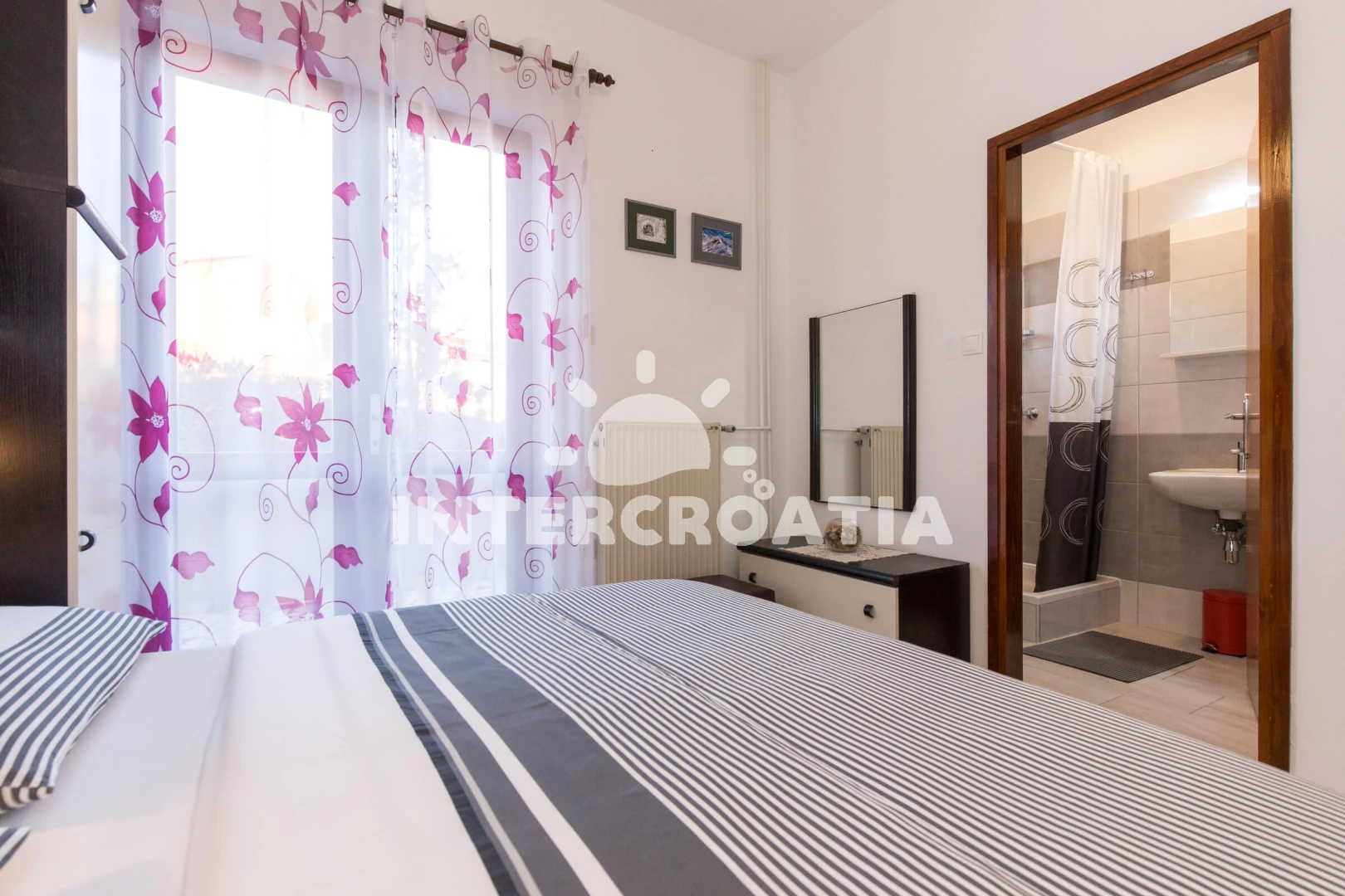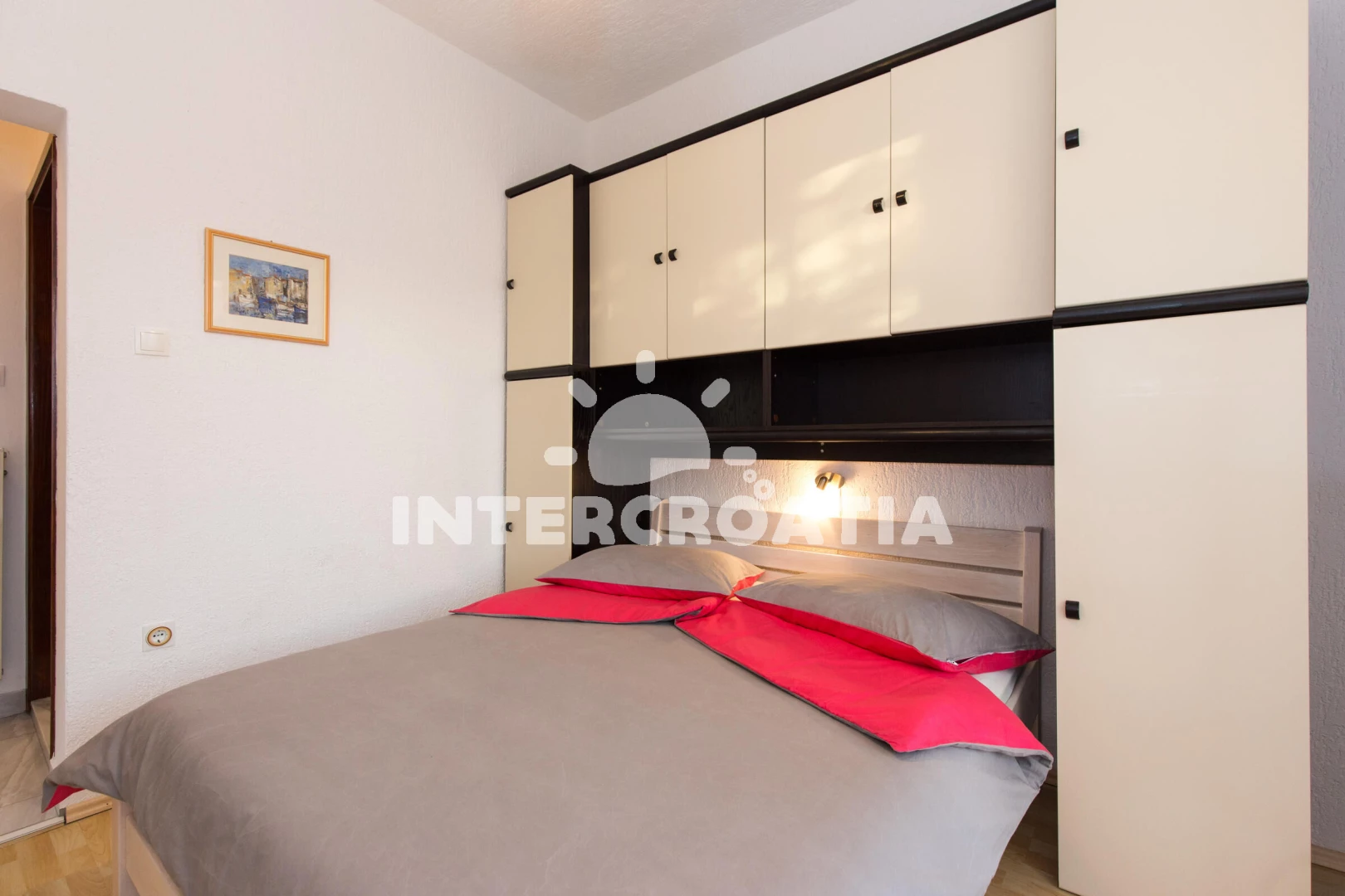 Apartmán se nachází 450 m od moře a pláže. Pláž je oblázková a betonové desky. U objektu je k dispozici společná zahrada s posezením a grilem. Parkování je před domem.