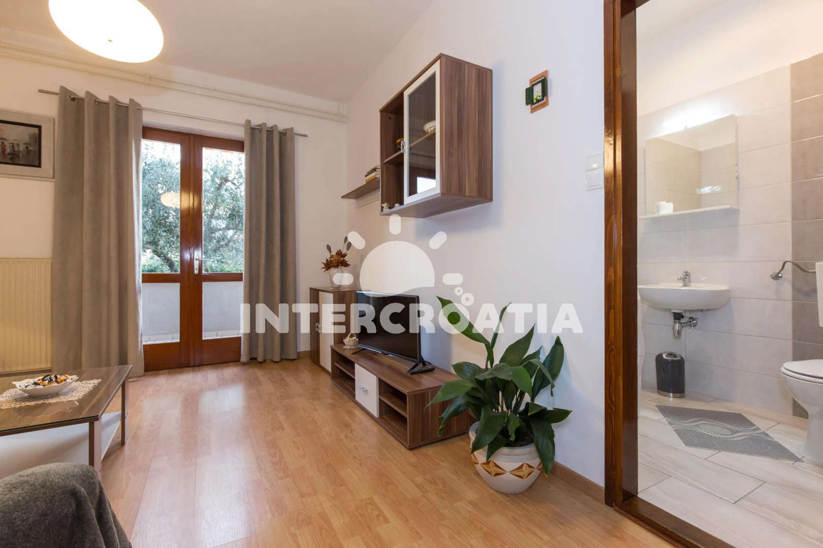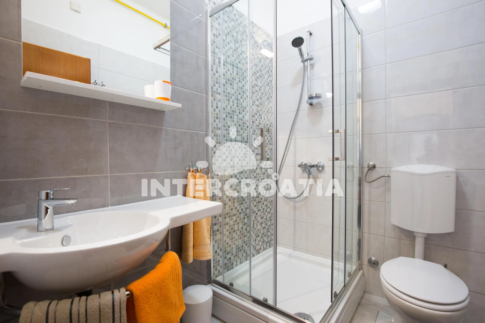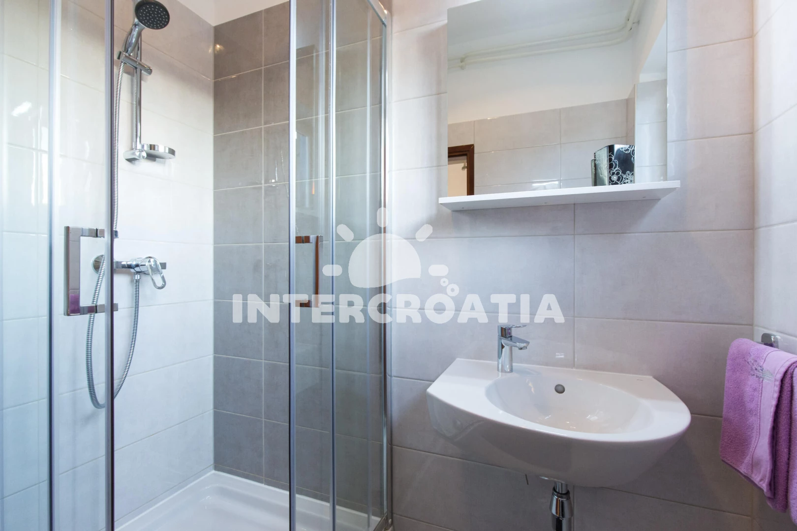Vzdálenosti: Moře 450 m, pláž 450 m (oblázková a betonové desky), bar 300 m, supermarket 300 m, restaurace 300 m, banka 400 m, muzeum 400 m, lékárna 500 m, čerpací stanice 500 m, centrum 500 m, směnárna 500 m, pošta 500 m, veřejná doprava 800 m, ambulance 1 km, trajekt (Valbiska (Krk)) 10 km, letiště (Rijeka) 16 km,