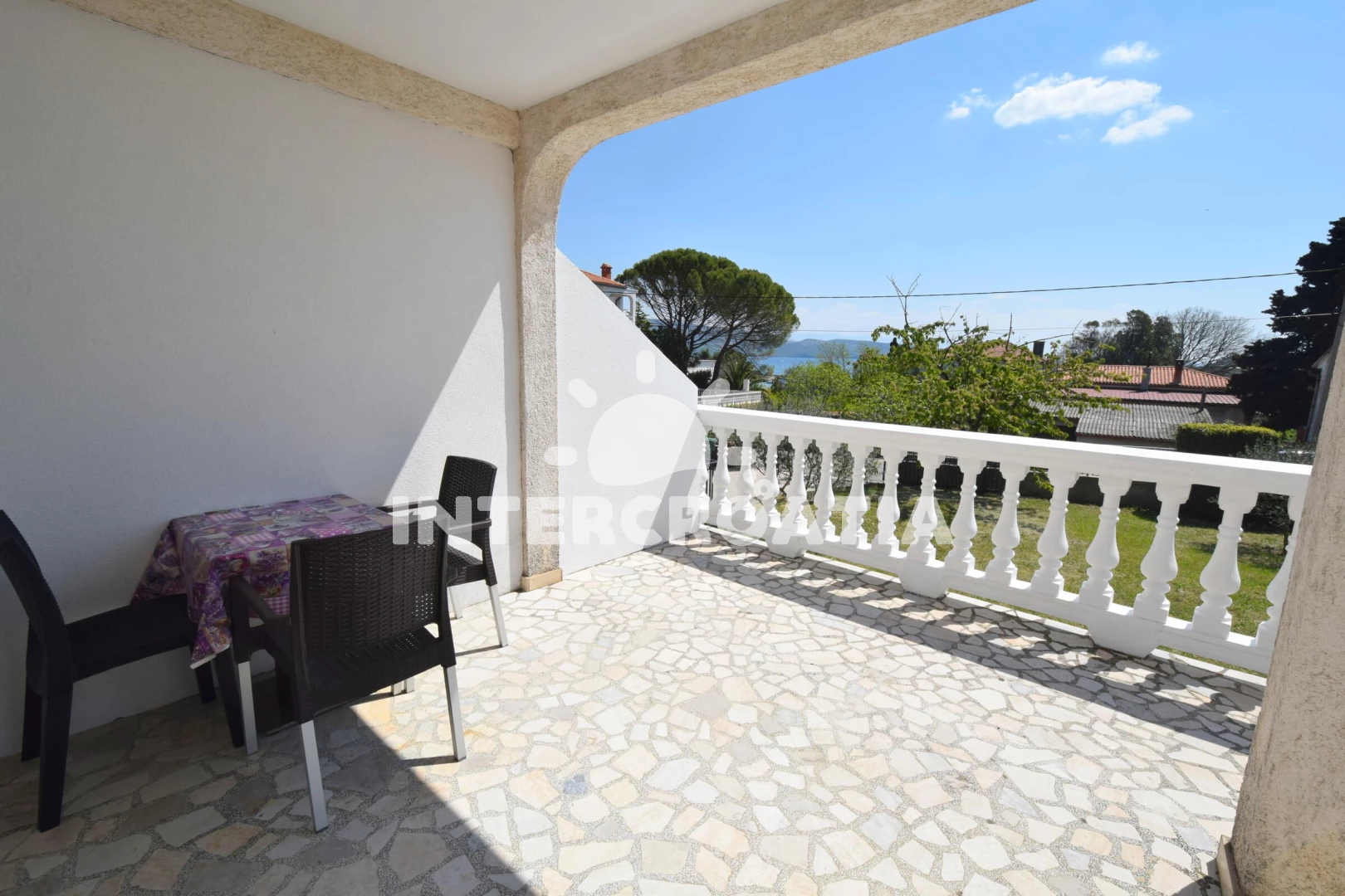 Vzdálenosti: Moře 400 m, pláž 400 m (oblázková a betonové desky), centrum 100 m, pošta 200 m, banka 300 m, supermarket 300 m, veřejná doprava 300 m, restaurace 300 m, bar 300 m, čerpací stanice 500 m, muzeum 500 m, trajekt (Valbiska (Krk)) 12 km, letiště (Rijeka) 26 km,