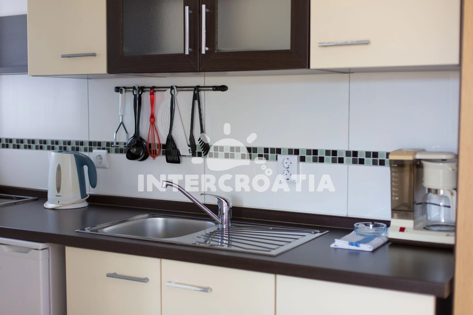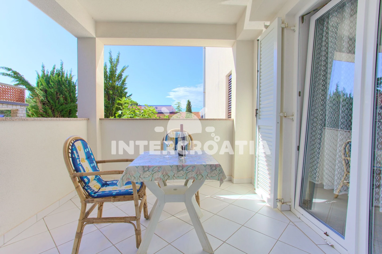 Vzdálenosti: Moře 100 m, pláž 100 m (oblázky), restaurace 200 m, bar 200 m, supermarket 200 m, směnárna 700 m, pošta 700 m, muzeum 700 m, banka 700 m, centrum 700 m, lékárna 800 m, ambulance 1 km,