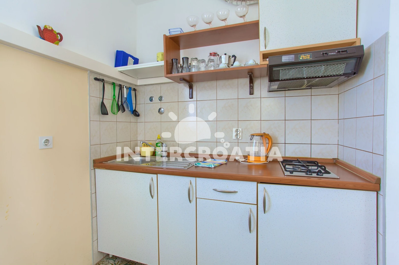 Vzdálenosti: Moře 100 m, pláž 100 m (oblázky), restaurace 200 m, bar 200 m, supermarket 200 m, směnárna 700 m, pošta 700 m, muzeum 700 m, banka 700 m, centrum 700 m, lékárna 800 m, ambulance 1 km,