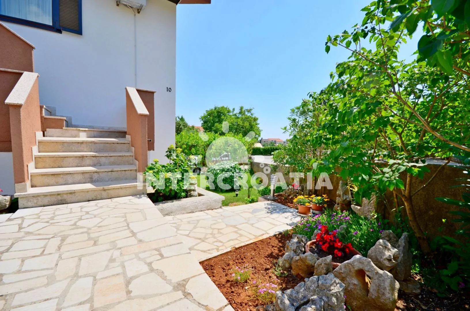 Samostatně stojící vilka se zahradou, pergolou s posezením a zděným grilem se nachází v oblíbené lokalitě města Krk. Hostům je k dispozici parkování u objektu.