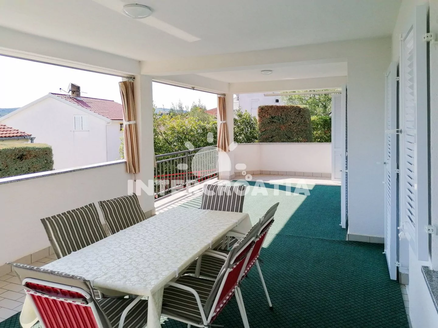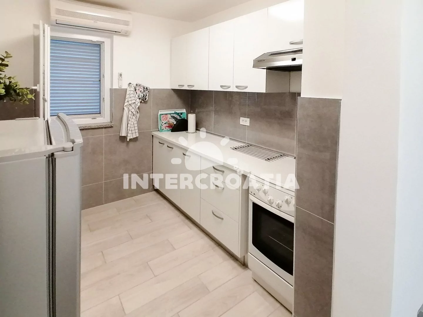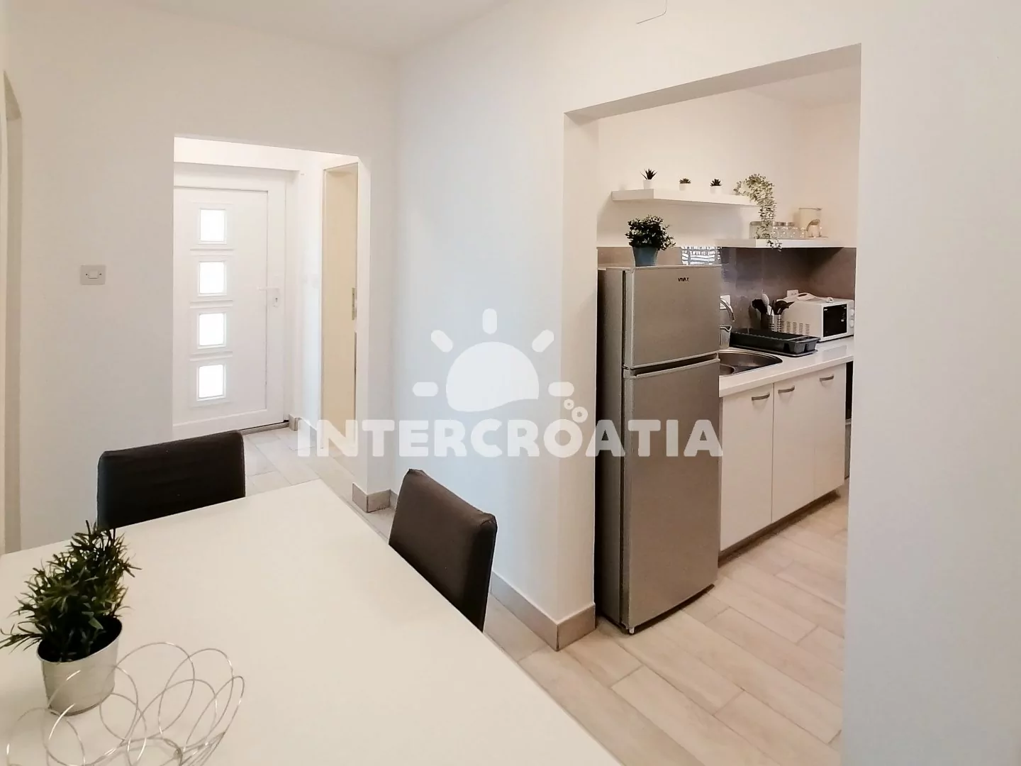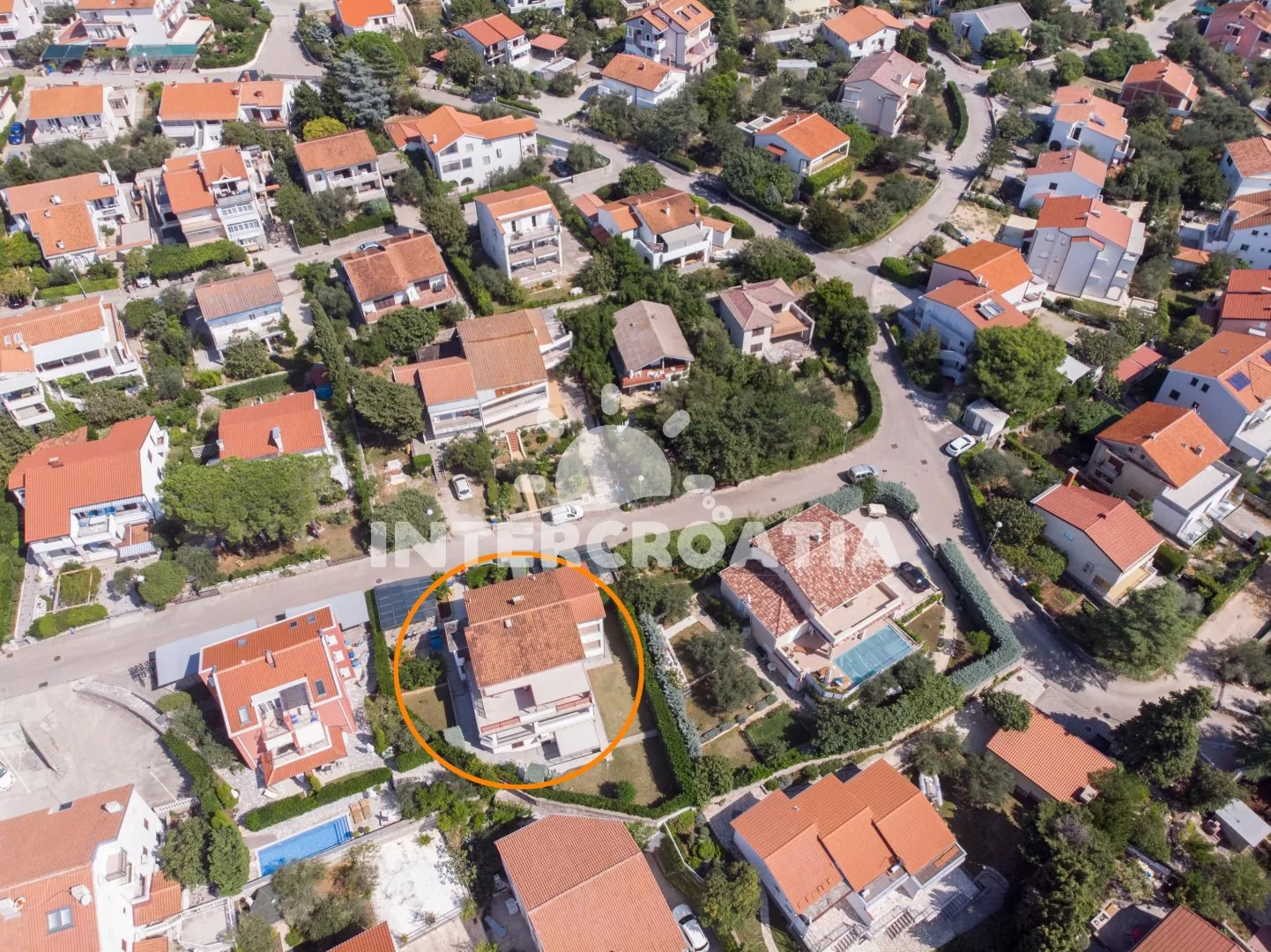Patrový apartmánový dům vzdušnou čarou 250 m od moře. Apartmány s terasami a venkovním posezením, k dispozici parkovací místa pro automobil.