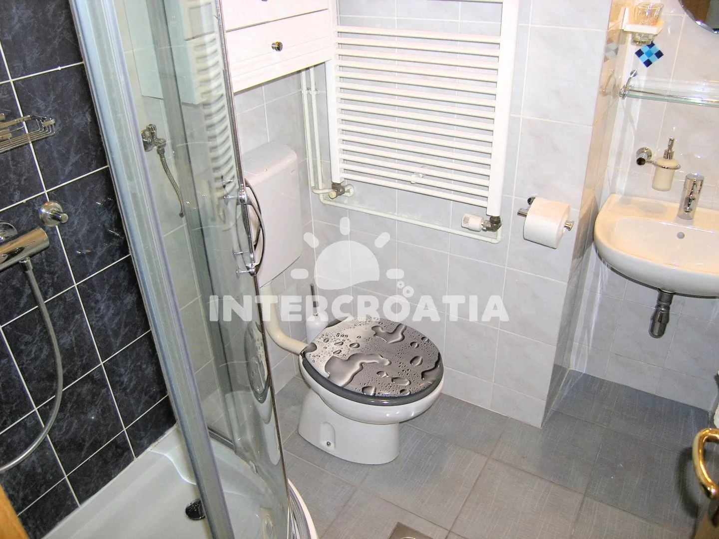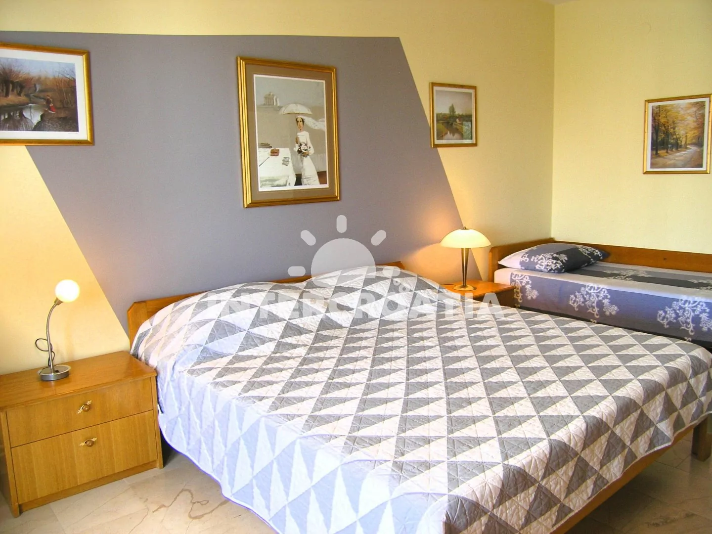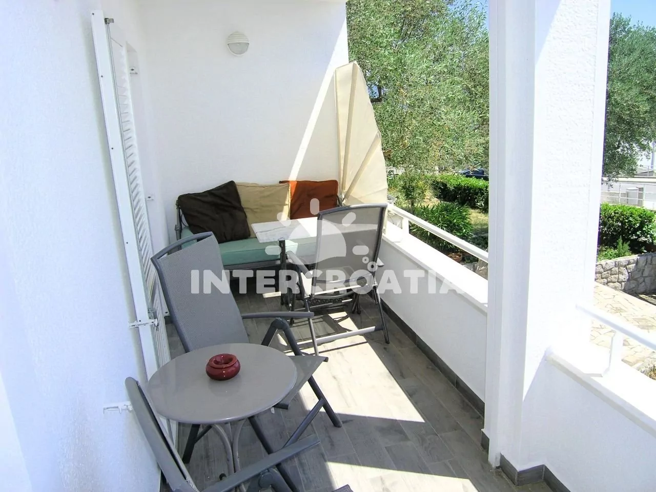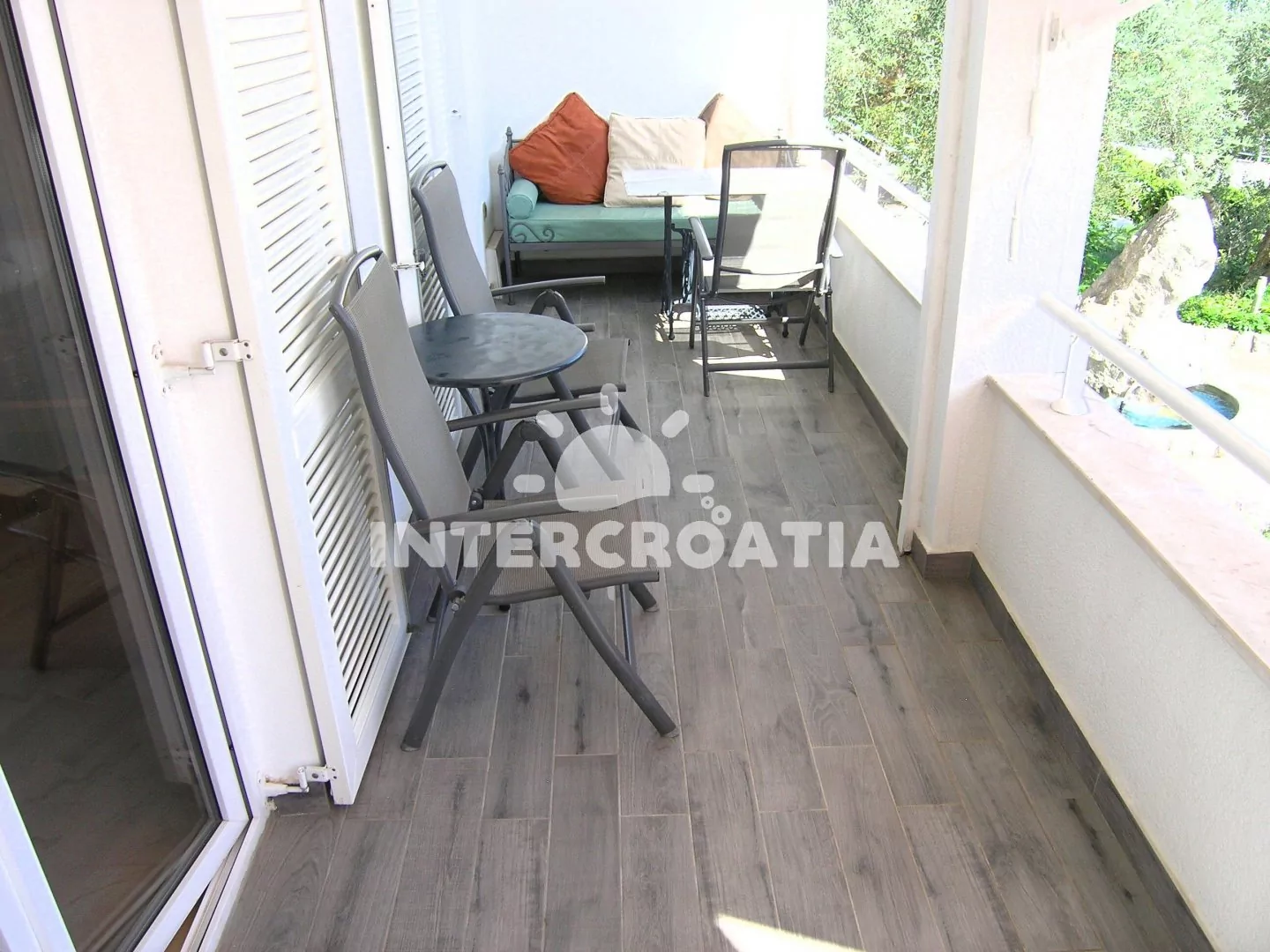 Apartmán s výhledem na moře a balkonem, se nachází v přízemí domu a je vhodný pro 2 až 3 osoby. Obývací pokoj je spojený s kuchyní. Kuchyňská linka je vybavena sporákem, digestoří, mikrovlnnou troubou, kávovarem, nádobím a lednicí s mrazákem. Obývací pokoj s jídelním stolem pro 4 osoby, pohovkou, televizí se satelitním programem, klimatizací a vstupem na balkon. Ložnice je vybavena jedním dvoulůžkem, jedním jednolůžkem a vstupem na balkon. Koupelna se sprchovým koutem, umyvadlem a wc. Hostům je k dispozici parkování u objektu zdarma.