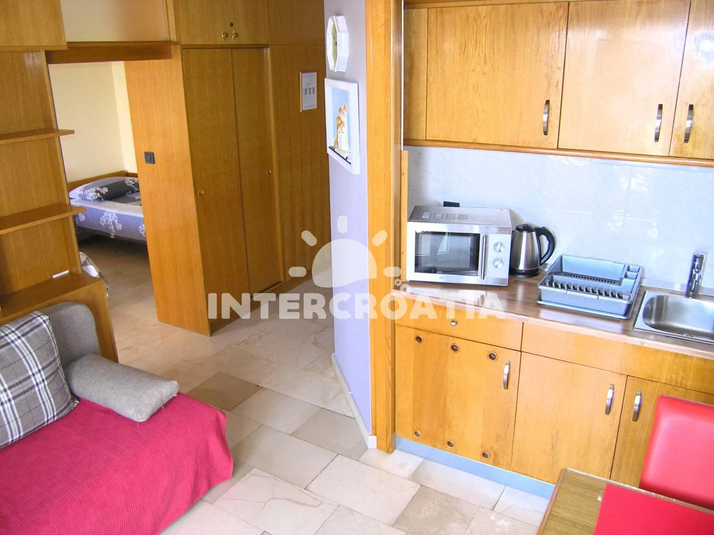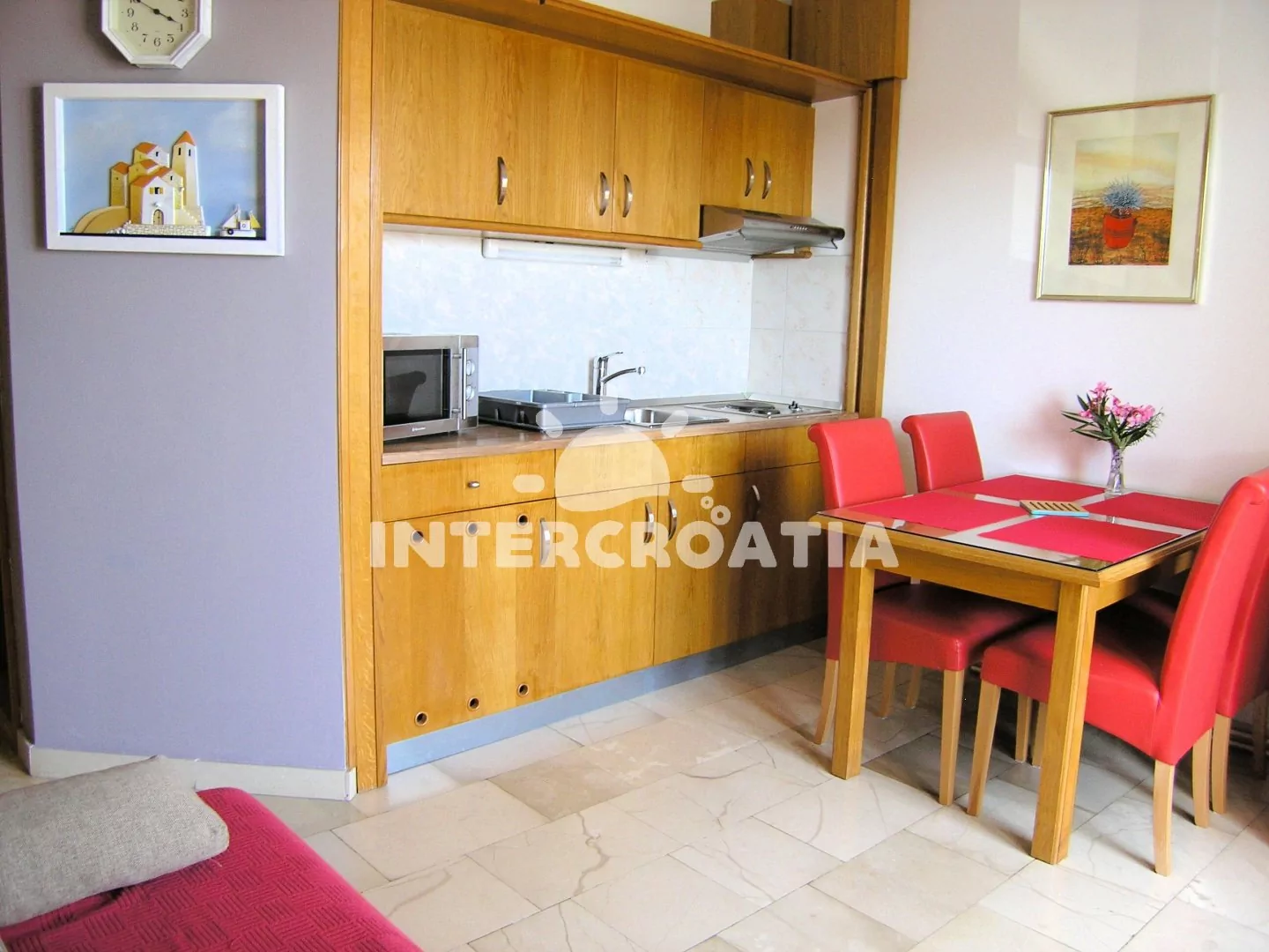 Apartmán s výhledem na moře a balkonem, se nachází v přízemí domu a je vhodný pro 2 až 3 osoby. Obývací pokoj je spojený s kuchyní. Kuchyňská linka je vybavena sporákem, digestoří, mikrovlnnou…
