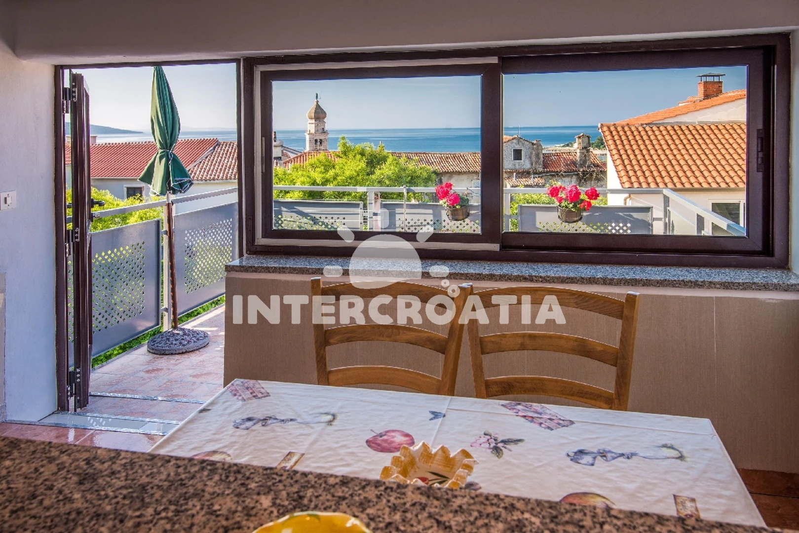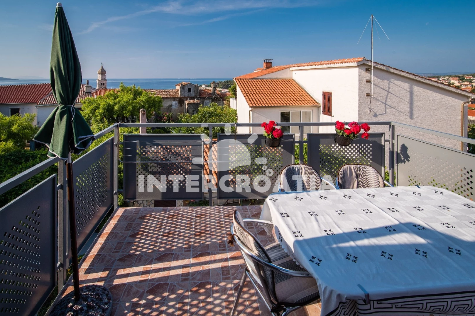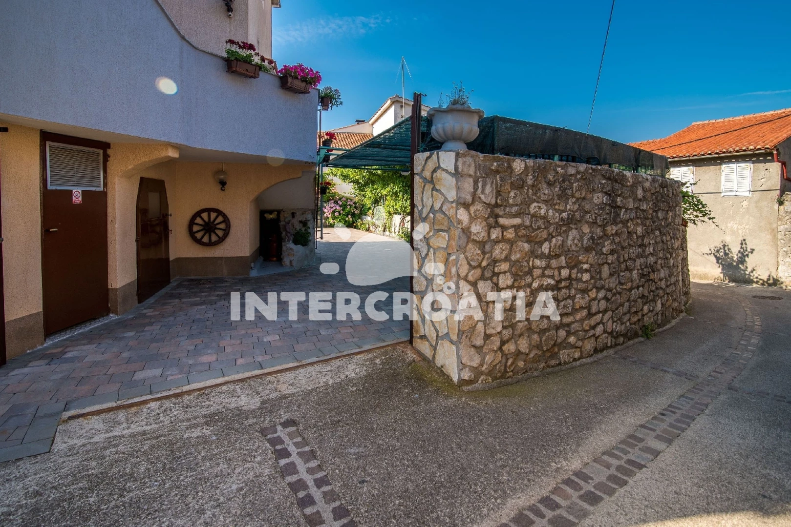 Vzdálenosti: Moře 250 m, pláž 700 m (skalnatá, oblázková a betonové desky), centrum 100 m, ambulance 100 m, lékárna 150 m, směnárna 150 m, bar 150 m, supermarket 250 m, pošta 300 m, restaurace 300 m, veřejná doprava 300 m, banka 300 m, diskotéka 400 m, čerpací stanice 1 km, trajekt (Valbiska (Krk)) 12 km, letiště (Rijeka) 25 km,