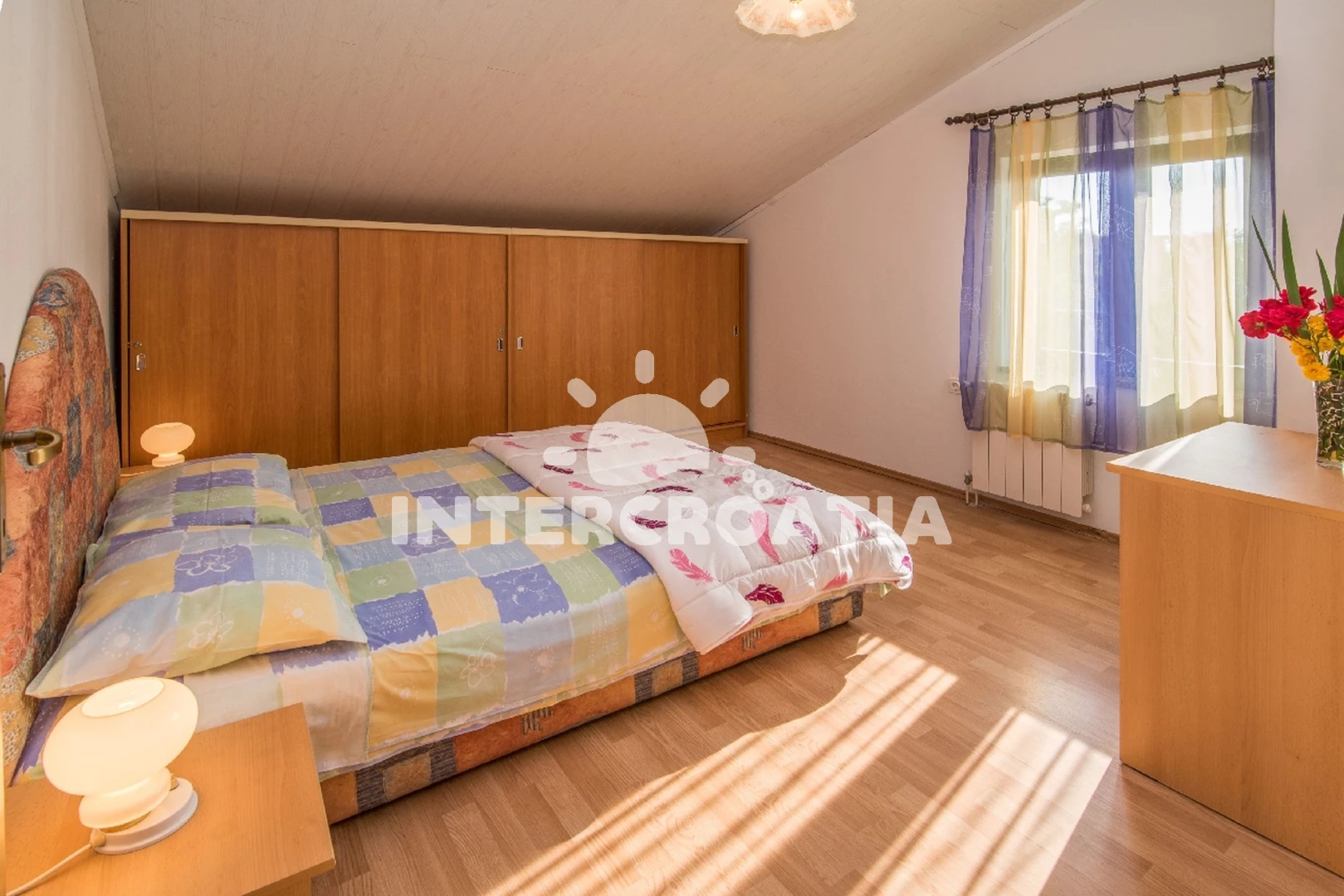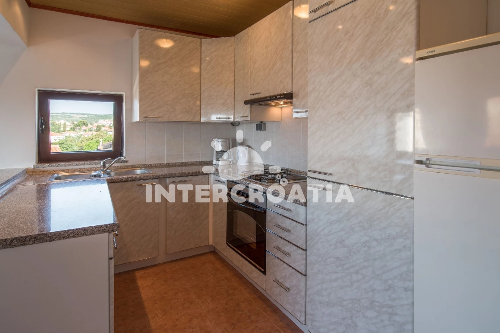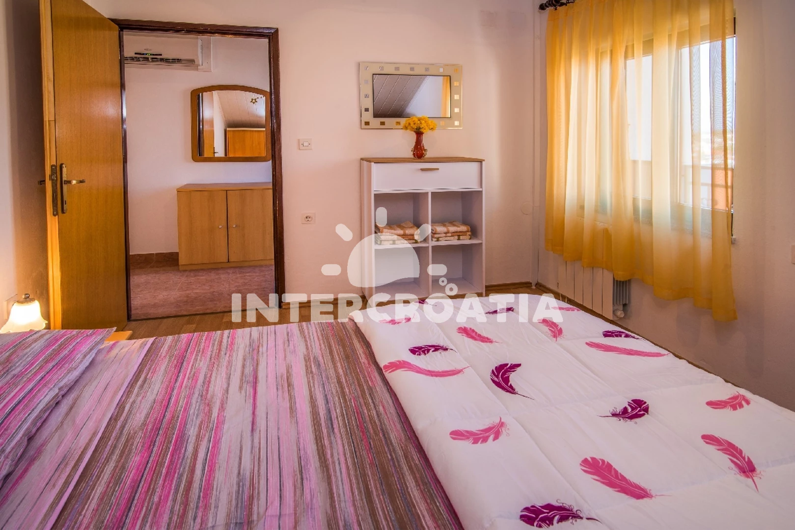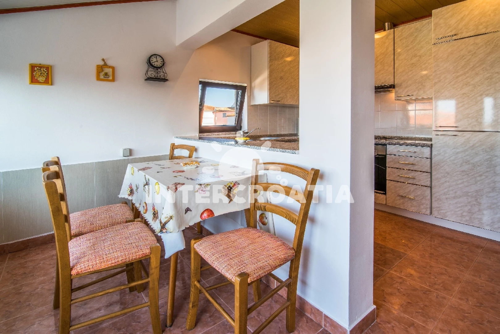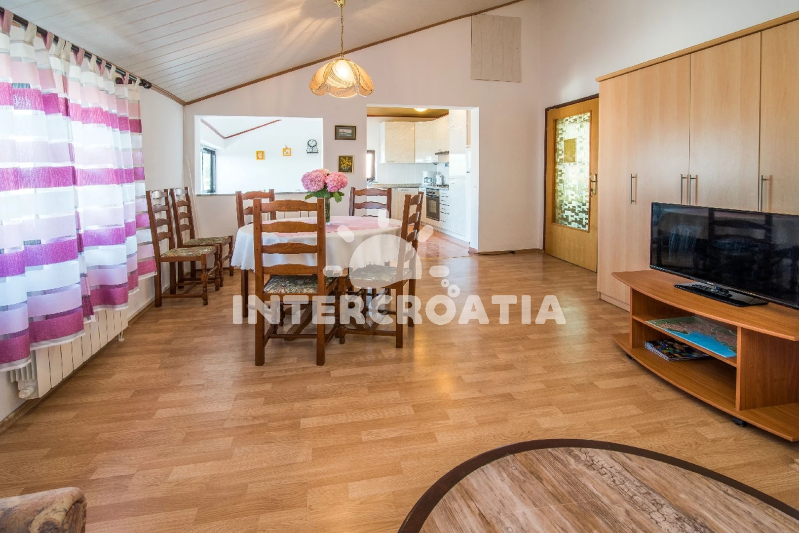 Apartmán (66 m2) s výhledem na moře. Nachází se v podkroví objektu. Apartmán má 2 ložnice a je vhodný pro až 4 osoby. Kuchyňská linka je vybavena varnou deskou, kávovarem, troubou, myčkou na nádobí,…
