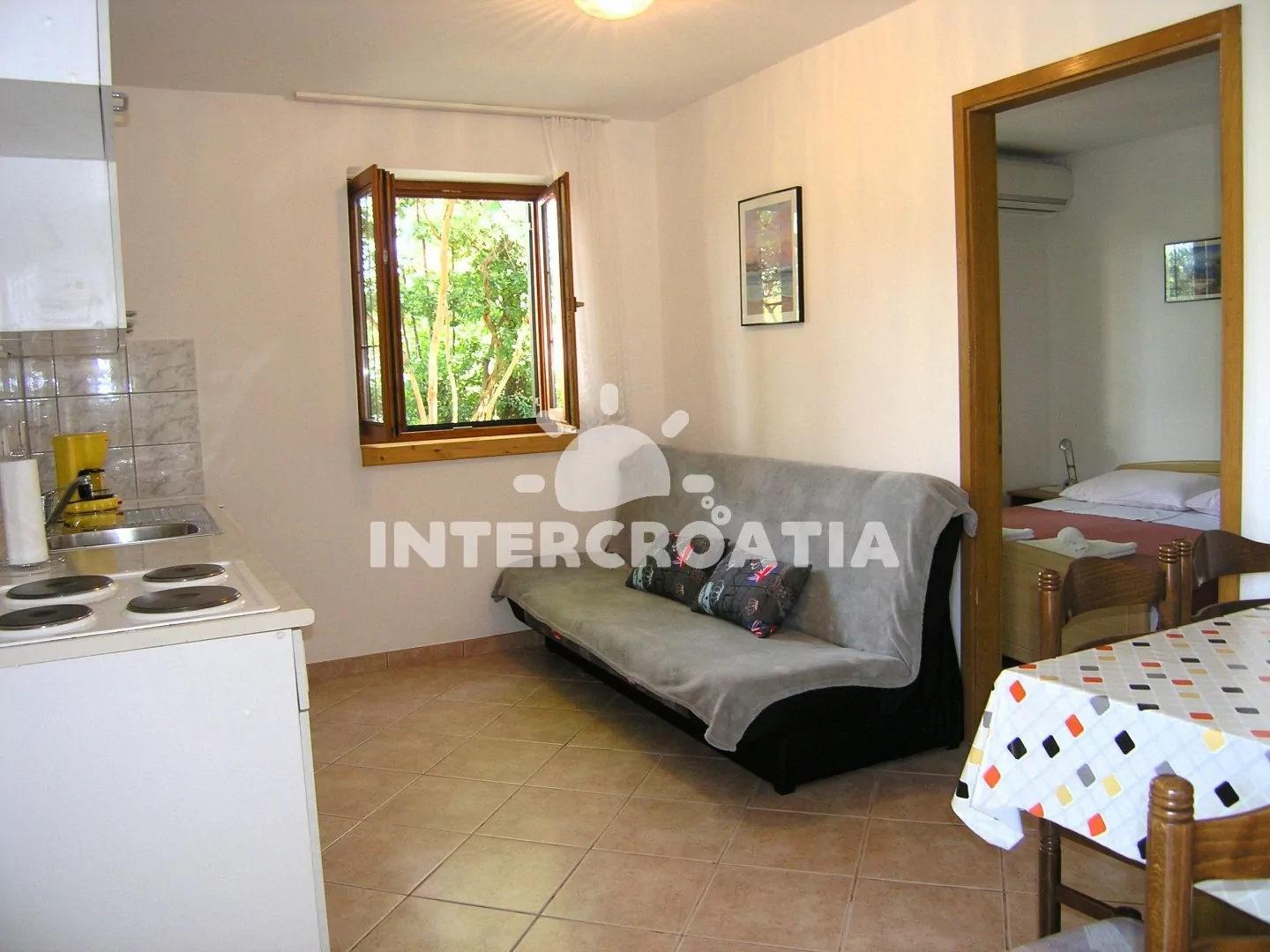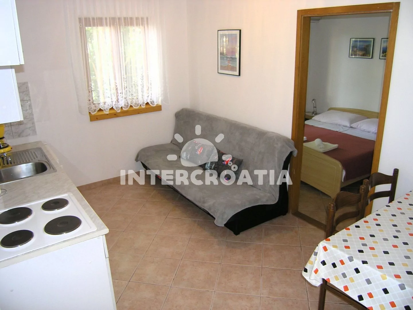Vzdálenosti: Moře a pláž 500 m, centrum, potápění, tenis 500 m, restaurace 20 m, supermarket, banka 350 m, ambulance 900 m, pošta 700 m, diskotéka 750 m, trajekt 12 km, letiště 25 km.