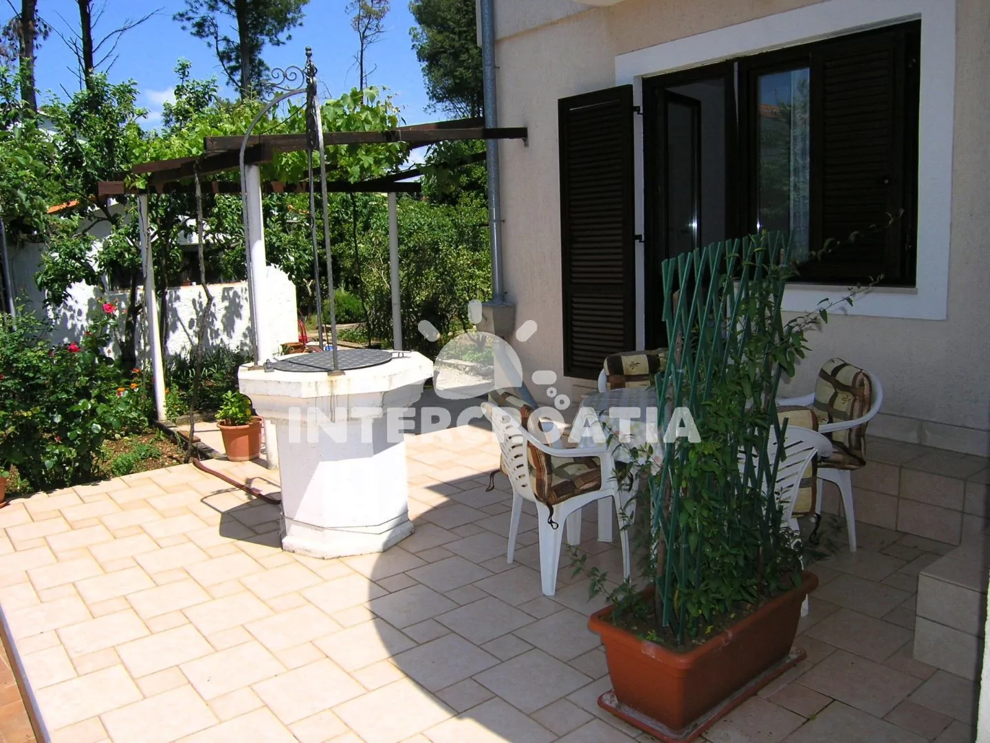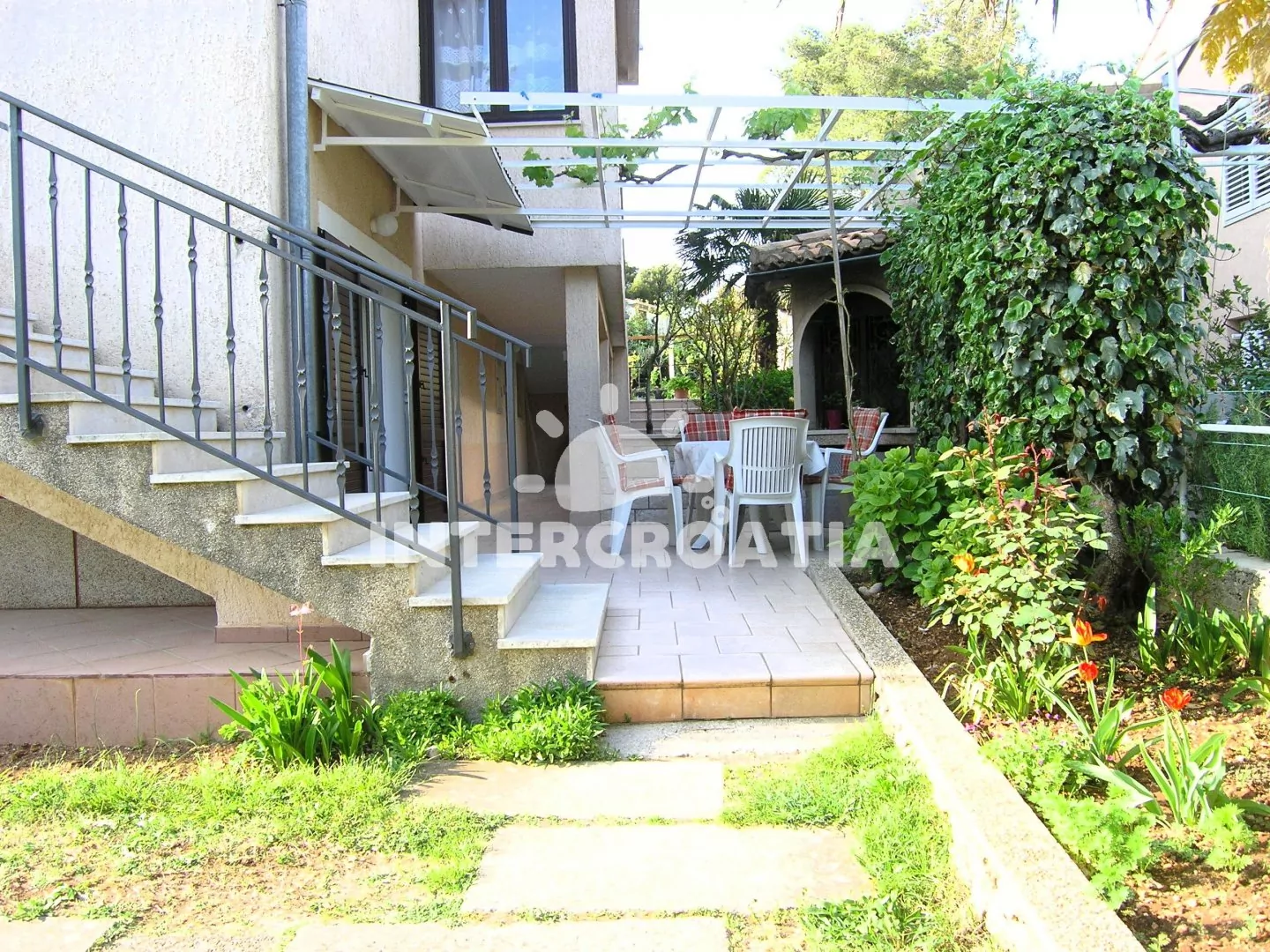 Hezky zařízená vilka se zahradou a venkovním posezením, nachází se 150 m od oblázkové pláže.