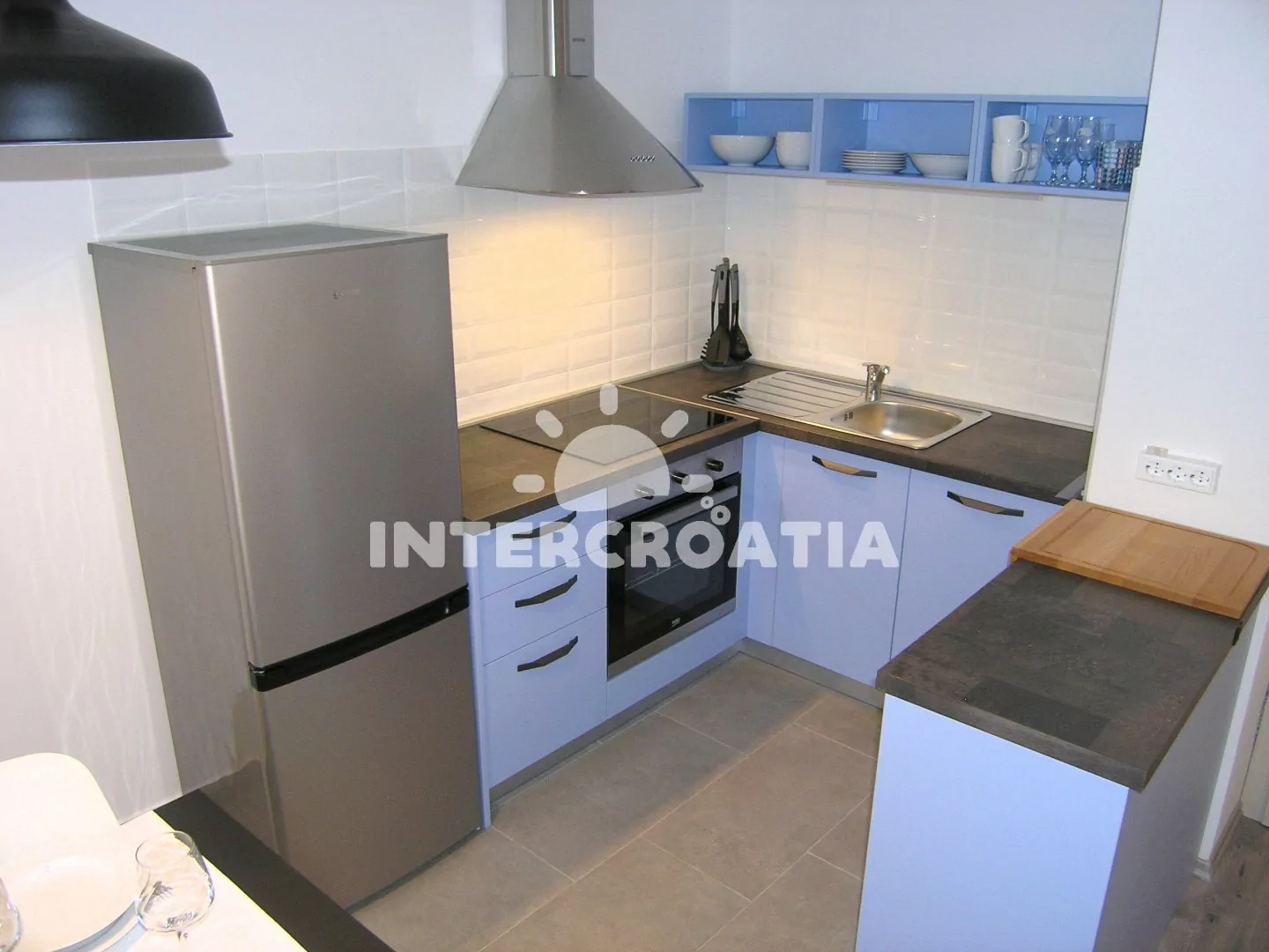 Apartmán s vlastní terasou je umístěný ve zvýšeném přízemí vily a je vhodný pro 2 až 3 osoby. Obývací pokoj je spojený s kuchyní. Kuchyňská linka je vybavena sklokeramickou varnou deskou, vestavěnou…