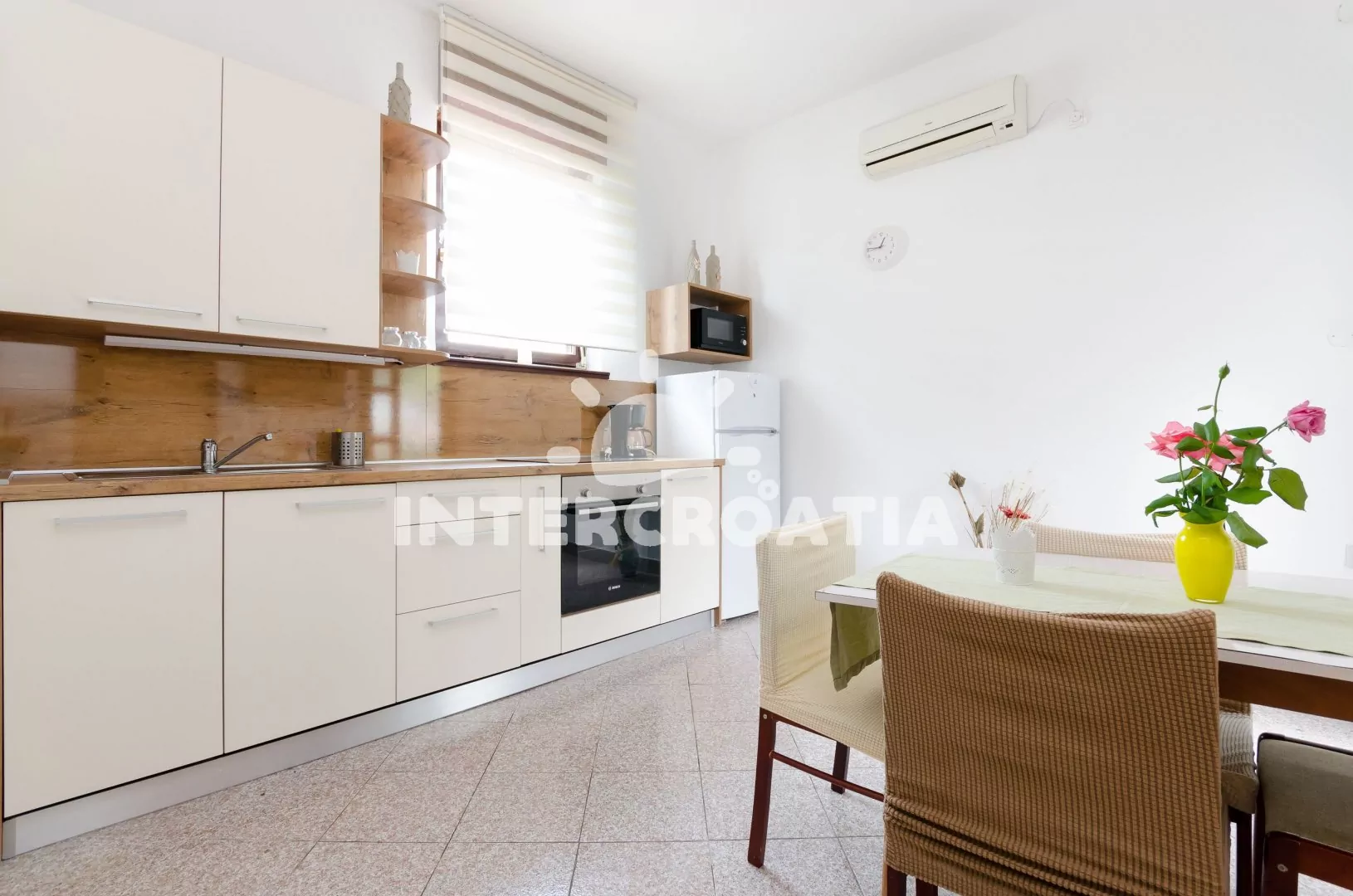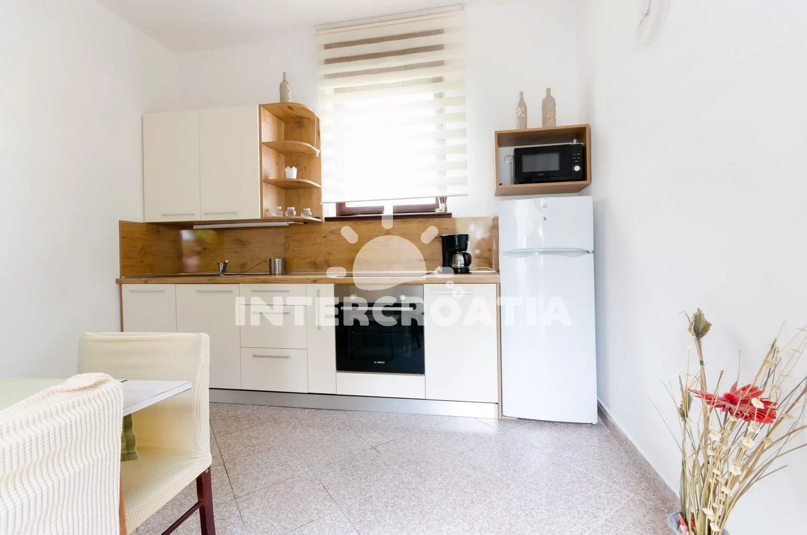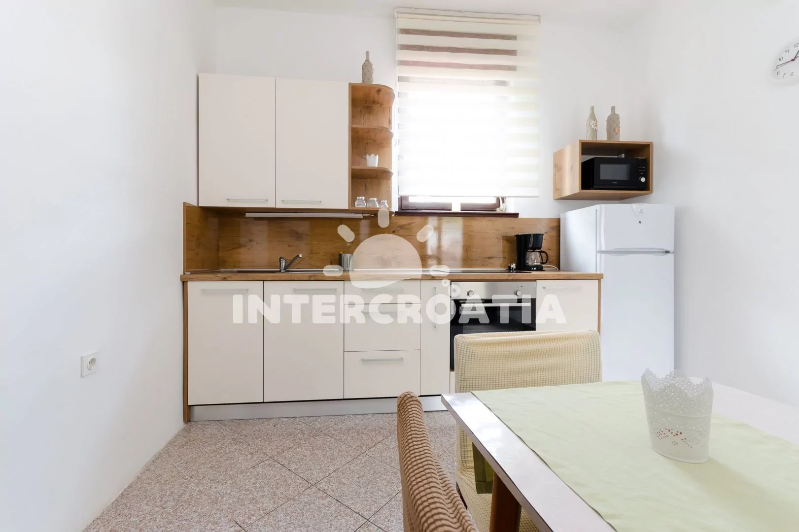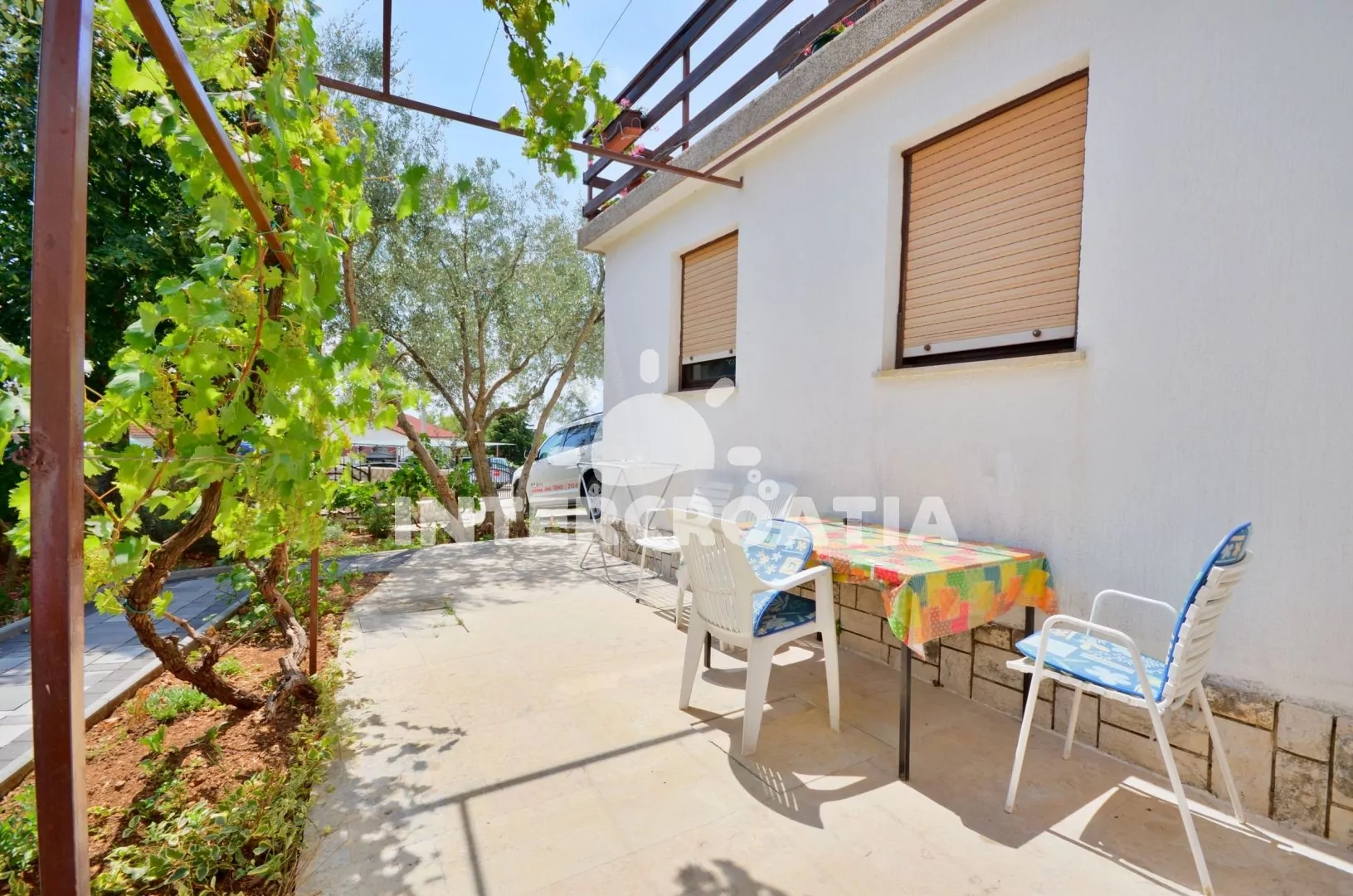 Samostatně stojící apartmánový dům, umístěný v klidné ulici s vlastním pozemkem, zahradou, parkovištěm pro automobily, terasou s venkovním posezením a grilem. Apartmány s lodžiemi a posezením. Dům se nachází 400 m pěší chůzí od moře a pláže.