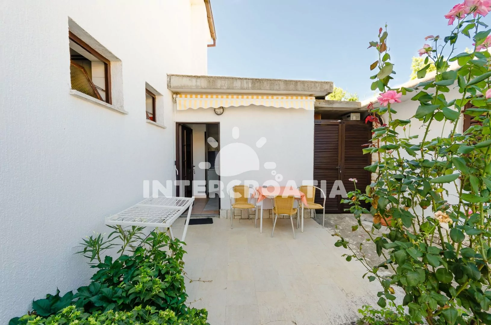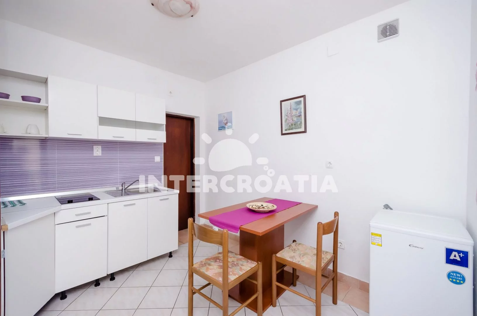 Samostatně stojící apartmánový dům, umístěný v klidné ulici s vlastním pozemkem, zahradou, parkovištěm pro automobily, terasou s venkovním posezením a grilem. Apartmány s lodžiemi a posezením. Dům se nachází 400 m pěší chůzí od moře a pláže.