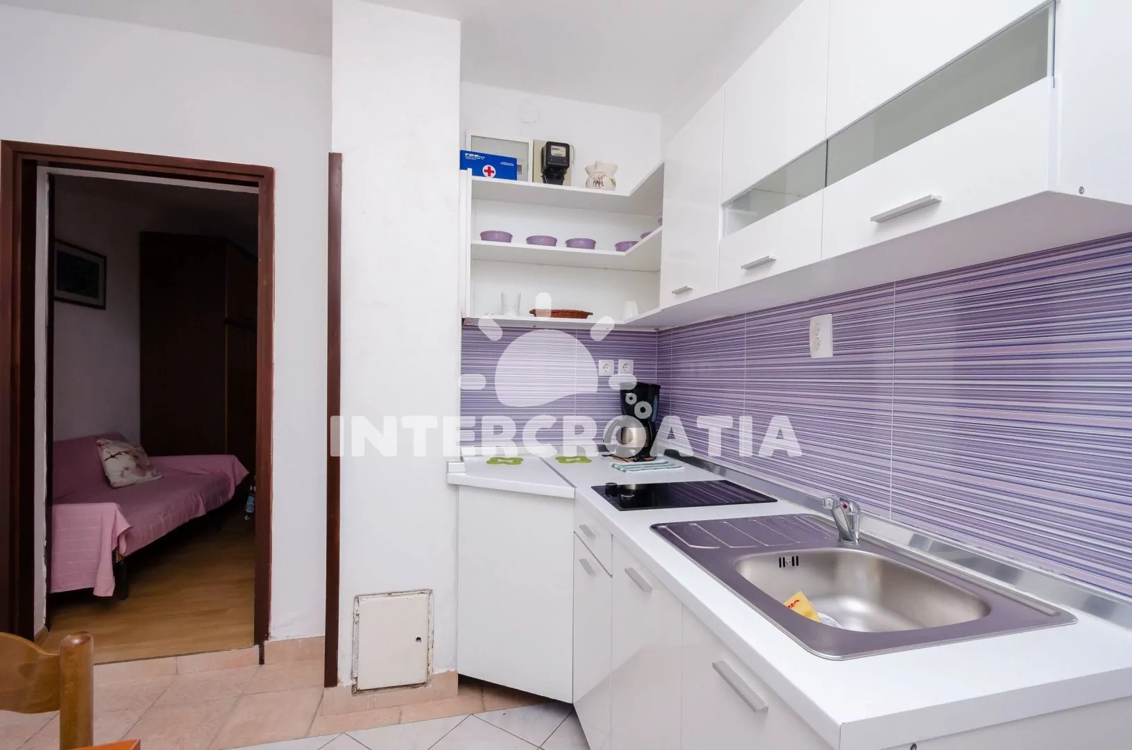 Vzdálenosti: Moře a oblázková-betonová pláž 400 m, centrum, potápění, půjčovna motorových člunů, supermarket, lékárna, směnárna, banka, pošta, čerpací stanice, venkovní a vnitřní bazén, tenis, minigolf, půjčovna cyklistických kol, muzeum, diskotéka, bar 300 m, restaurace 400 m, veřejná doprava 600 m, ambulance 1 km, trajekt 13,9 km, letiště 15 km.