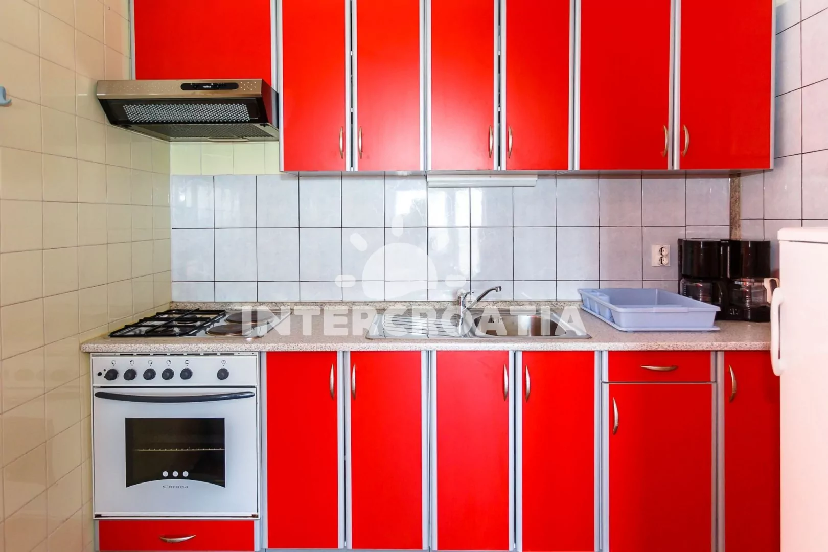 Vzdálenosti: Moře a oblázková-betonová pláž 1 km, restaurace, bar, supermarket 100 m, centrum, veřejná doprava, půjčovna motorových člunů, čerpací stanice, směnárna, lékárna, pošta, banka, diskotéka, půjčovna cyklistických kol, muzeum 400 m, potápění 700 m, přístav 7 km, trajekt 13 km, letiště 22 km.