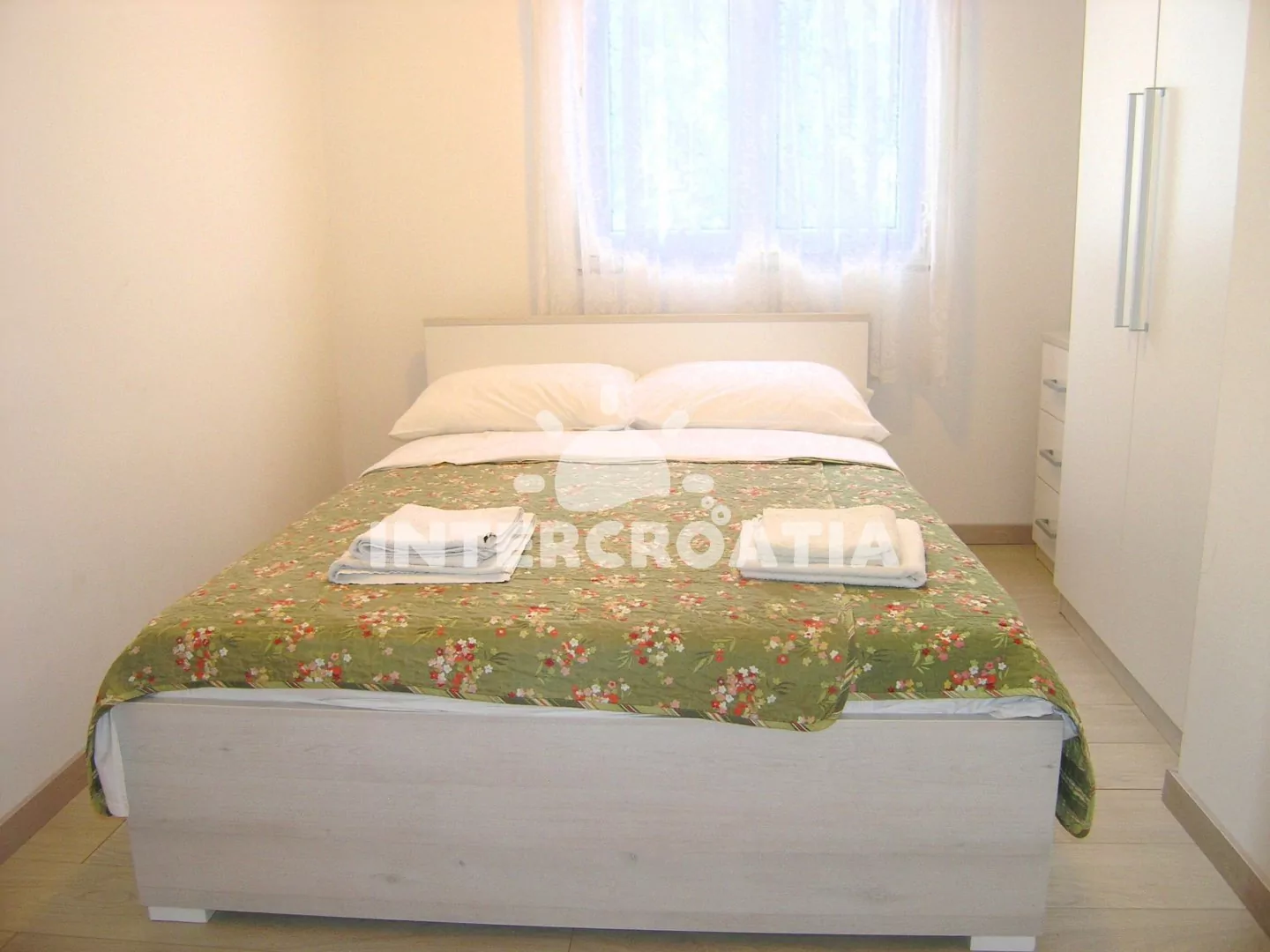 Apartmán (48 m2) s terasou, posezením a výhledem do dvora se nachází v přízemí domu. Apartmán má 2 ložnice a je vhodný pro 4 osoby. Obývací pokoj je spojený s kuchyní. Kuchyňská linka je vybavena sklokeramickou varnou deskou, rychlovarnou konvicí, kávovarem, nádobím a lednicí s mrazákem. Obývací pokoj s jídelním stolem pro 4 osoby, pohovkou, televizí se satelitním programem, klimatizací a vstupem na terasu. První i druhá ložnice je vybavena vždy s jedním dvoulůžkem. Koupelna se sprchovým koutem, umyvadlem a wc. Hostům je k dispozici parkování u objektu zdarma.
