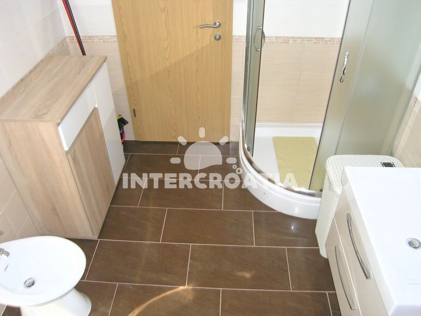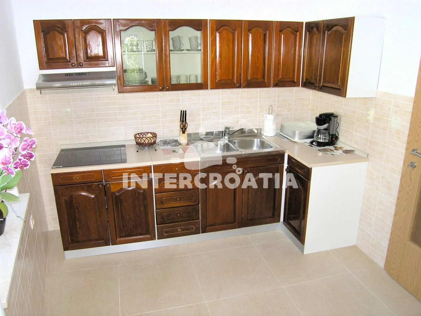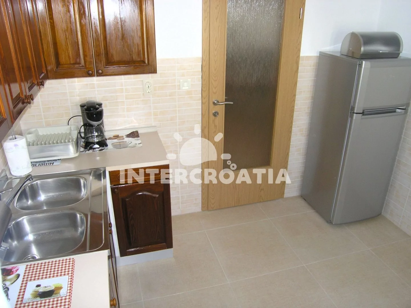 Apartmán (70 m2) s terasou, výhledem na moře a do zahrady se nachází v přízemí domu. Apartmán má 2 ložnice a je vhodný pro 4 až 5 osob. Obývací pokoj je spojený s kuchyní. Kuchyňská linka je vybavena…