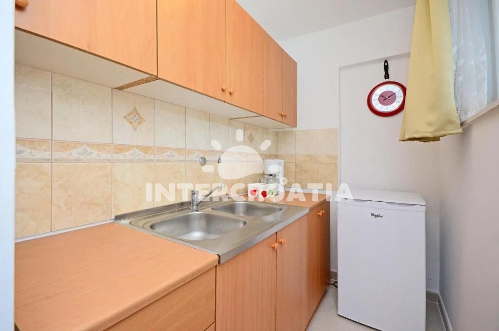 Apartmán typu studio (22 m2) s terasou. Nachází se v přízemí objektu. Kuchyňská linka je vybavena varnou deskou, kávovarem, nádobím, lednicí, mrazákem. K dispozici dvoulůžko, televize se satelitním programem, žehlička. Koupelna se sprchovým koutem, umyvadlem, WC.