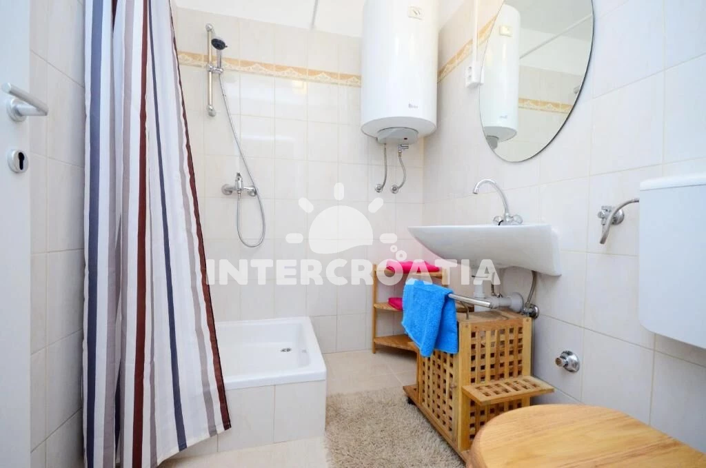 Apartmán se nachází 250 m od moře a pláže. Pláž je skalnatá, oblázková a betonové desky. Apartmán disponuje bazénem s lehátky pro ubytované hosty. U objektu je k dispozici společná zahrada s posezením a grilem. Parkování je před domem.