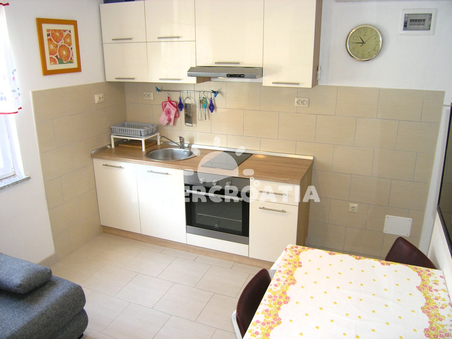 Apartmán se nachází 80 m od moře a pláže. Pláž je skalnatá, oblázková a betonové desky.