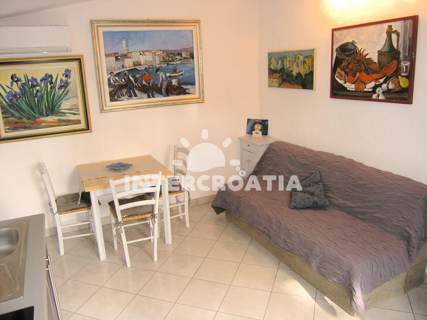 Vzdálenosti: Moře 300 m, pláž 300 m (skalnatá, oblázková a betonové desky), banka 150 m, pošta 150 m, restaurace 150 m, centrum 200 m, supermarket 200 m, diskotéka 200 m, ambulance 400 m, potápění 400 m, tenisové kurty 600 m, letiště 25 km, trajekt (Rijeka) 55 km,