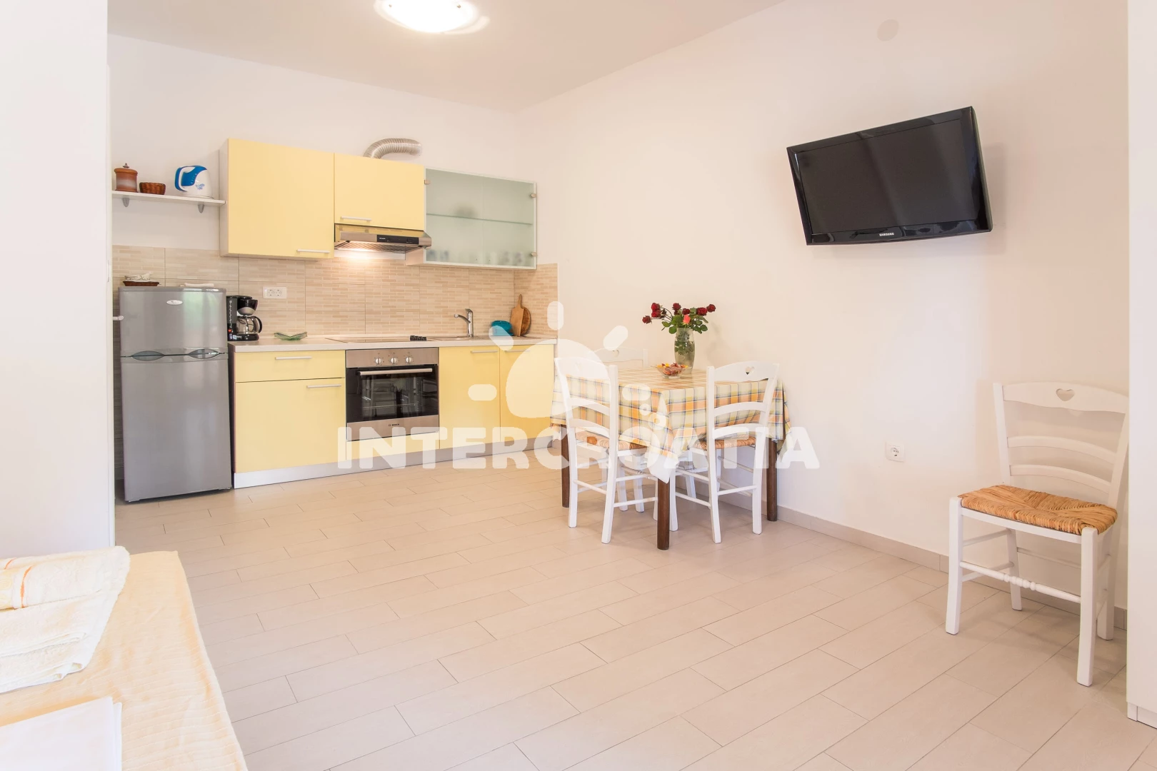 Apartmán se nachází 100 m od moře a pláže. Pláž je oblázková a betonové desky. U objektu je k dispozici společná zahrada s posezením a grilem. Parkování je před domem.