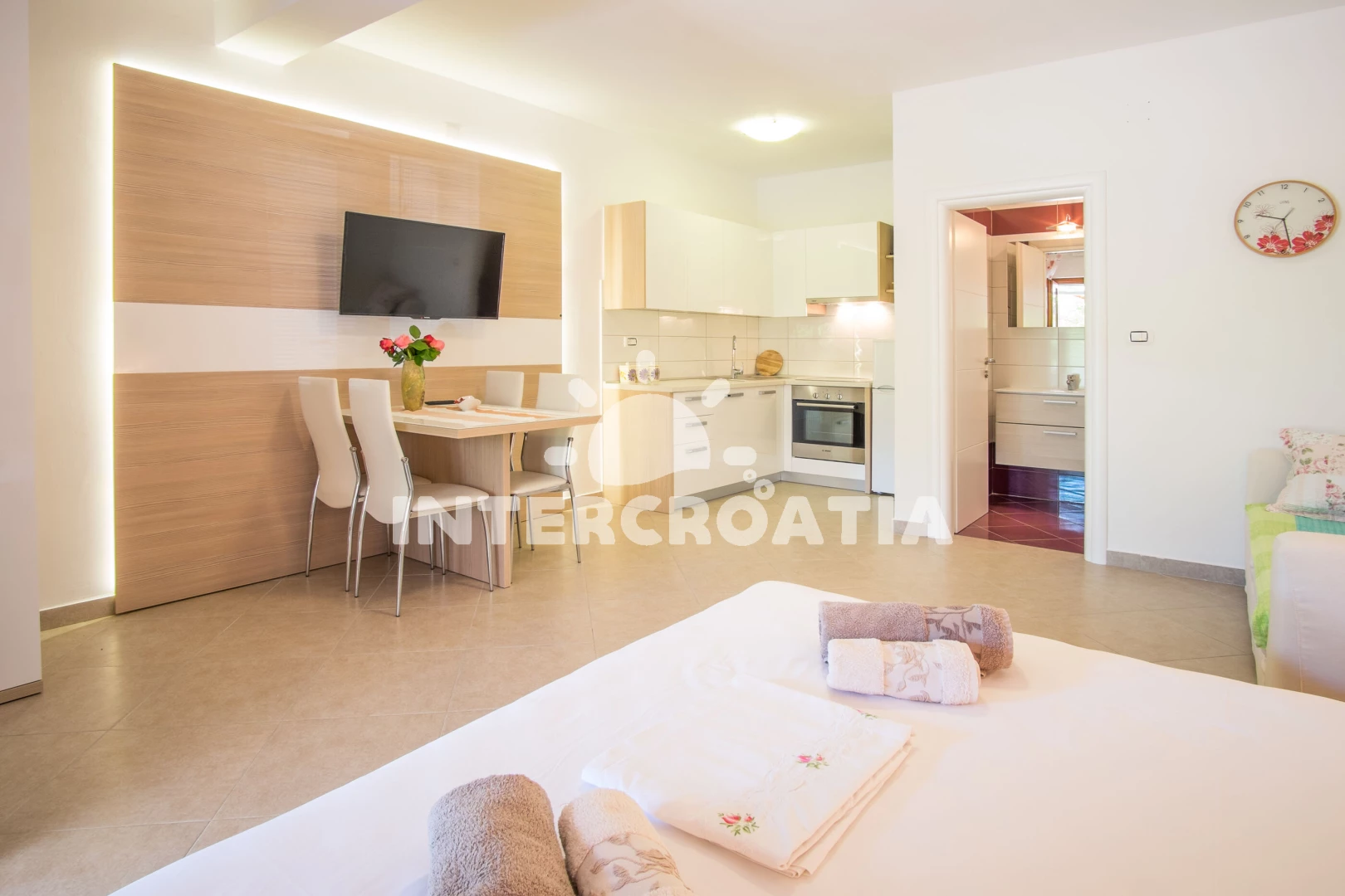Domácí zvířata nejsou povolena. V ceně pobytu zahrnuto: WiFi, klimatizace (část místností), povlečení, ručníky, dětská postýlka (služba na požádání), závěrečný úklid, pobytová taxa. Pronajímatel se dorozumí chorvatsky, Pronajímatel vás bude očekávat po 14:00. V den odjezdu je nutné vyklidit apartmán do 10:00.