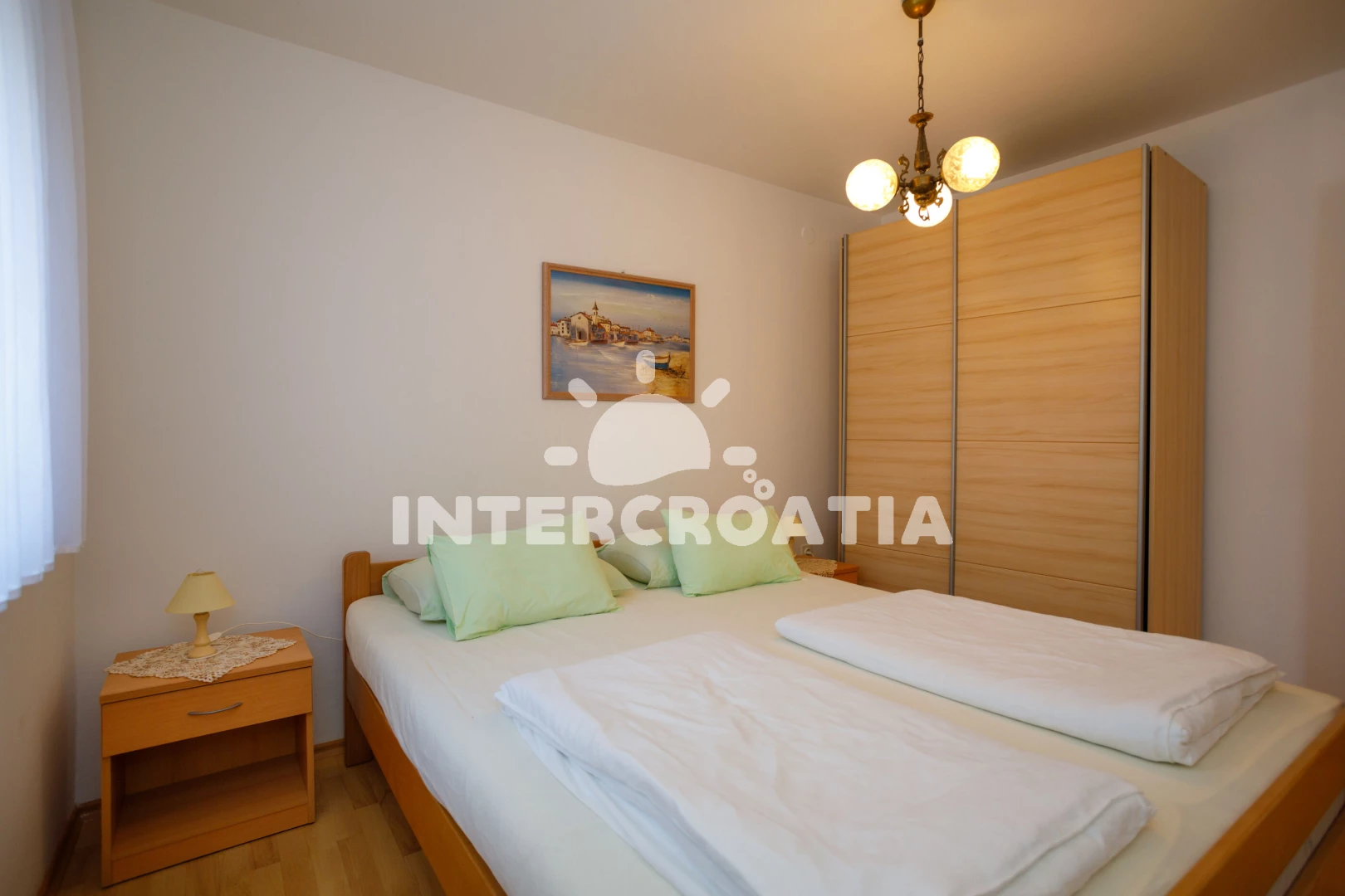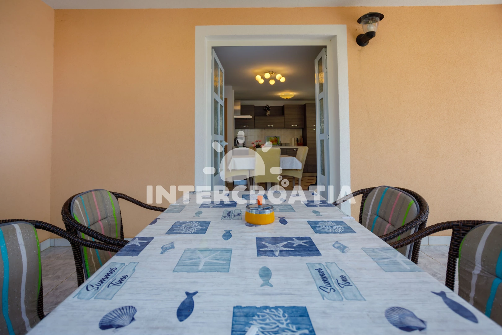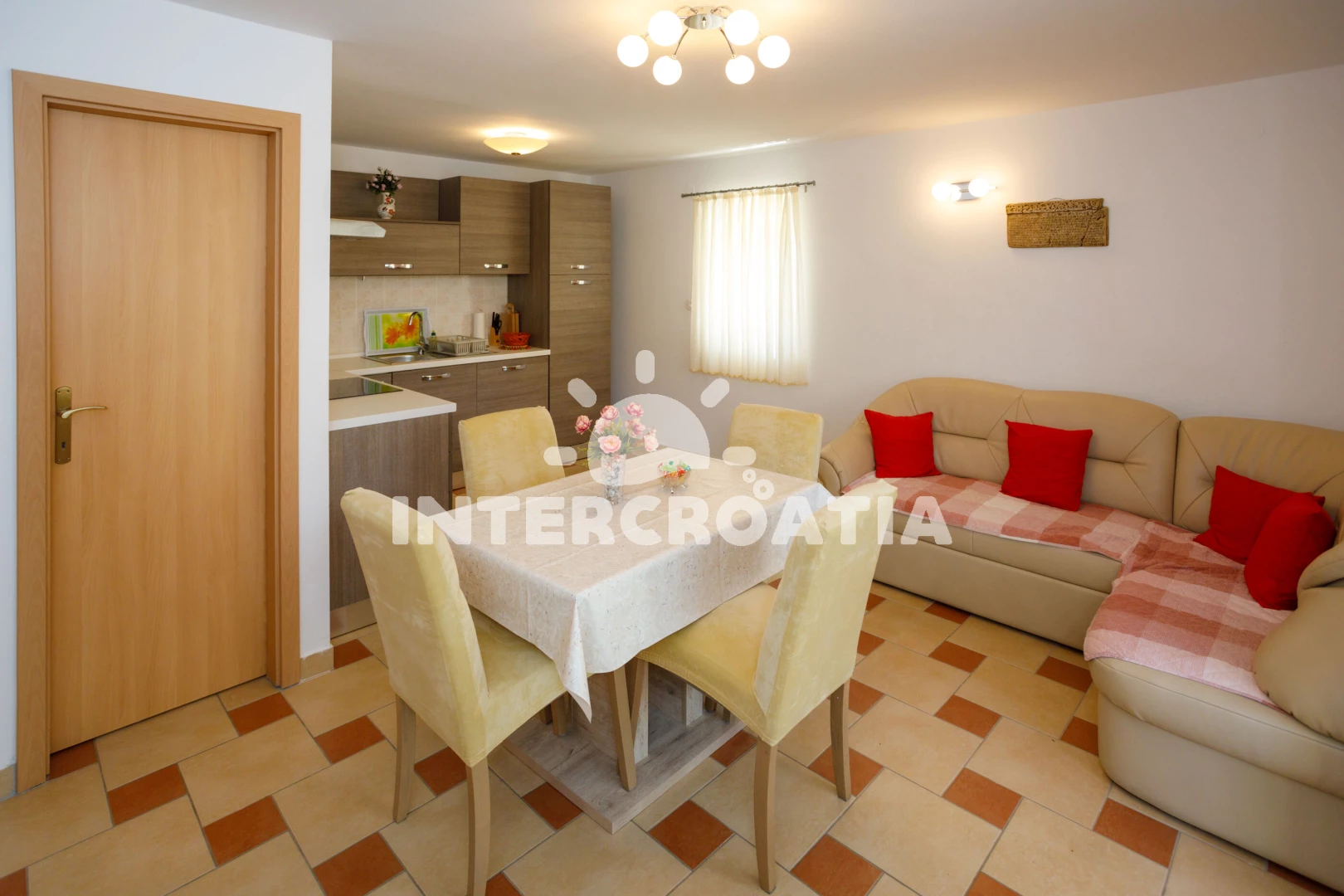 Apartmán se nachází 700 m od moře a pláže. Pláž je skalnatá, oblázková a betonové desky. U objektu je k dispozici společná zahrada s posezením a grilem. Parkování je před domem.