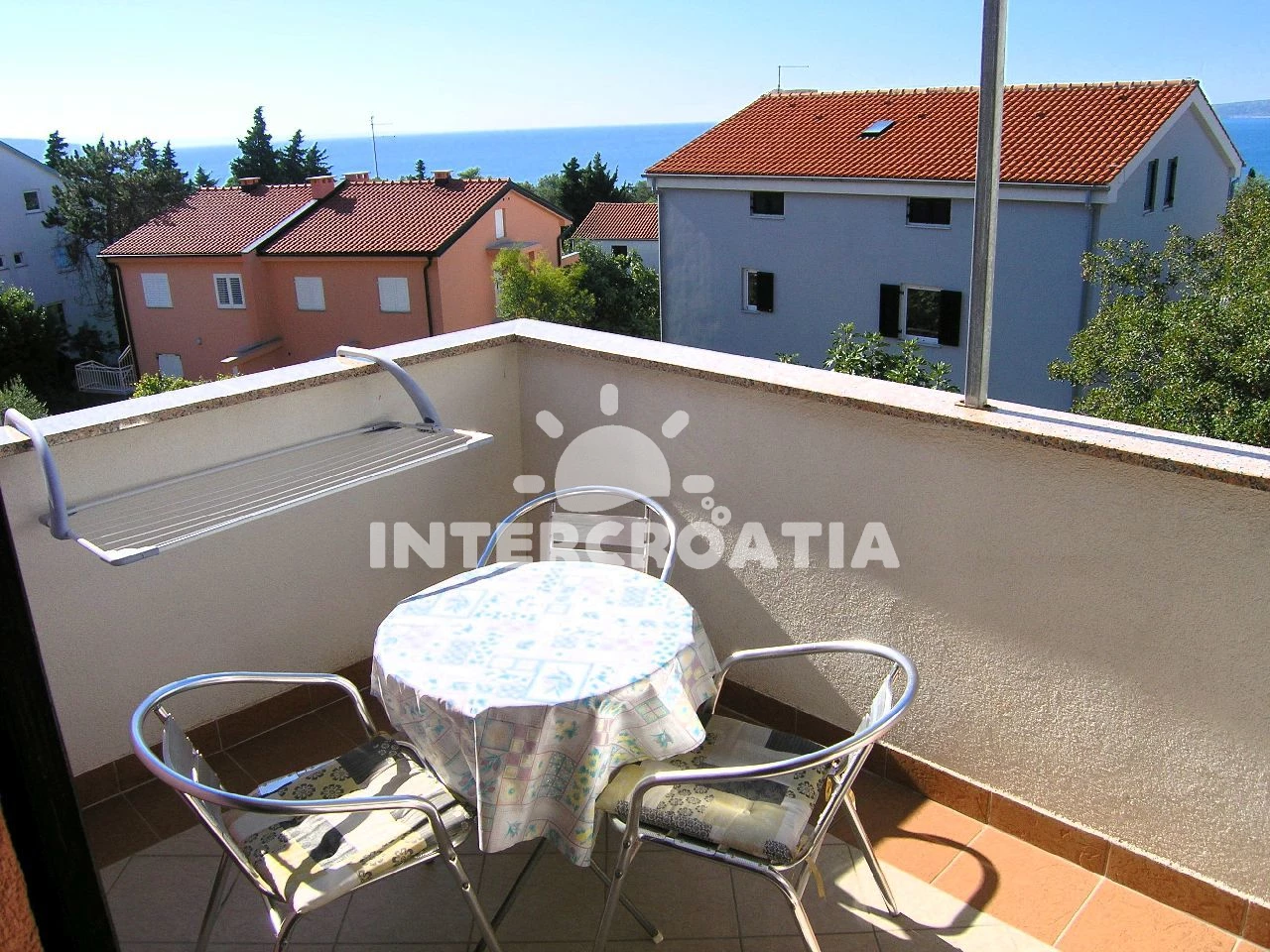 Vzdálenosti: Moře 350 m, pláž 500 m (skalnatá, oblázková a betonové desky), supermarket 200 m, tenisové kurty 300 m, čerpací stanice 300 m, půjčovna kol 300 m, restaurace 450 m, centrum 500 m, směnárna 600 m, lékárna 600 m, muzeum 600 m, banka 700 m, pošta 700 m, diskotéka 700 m, potápění 1 km, ambulance 1,5 km, trajekt (Valbiska (Krk)) 12 km, letiště 25 km,