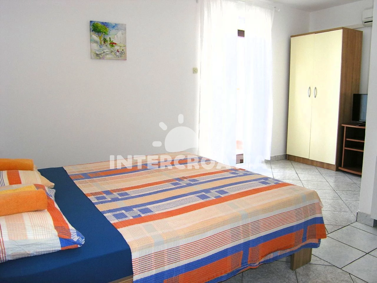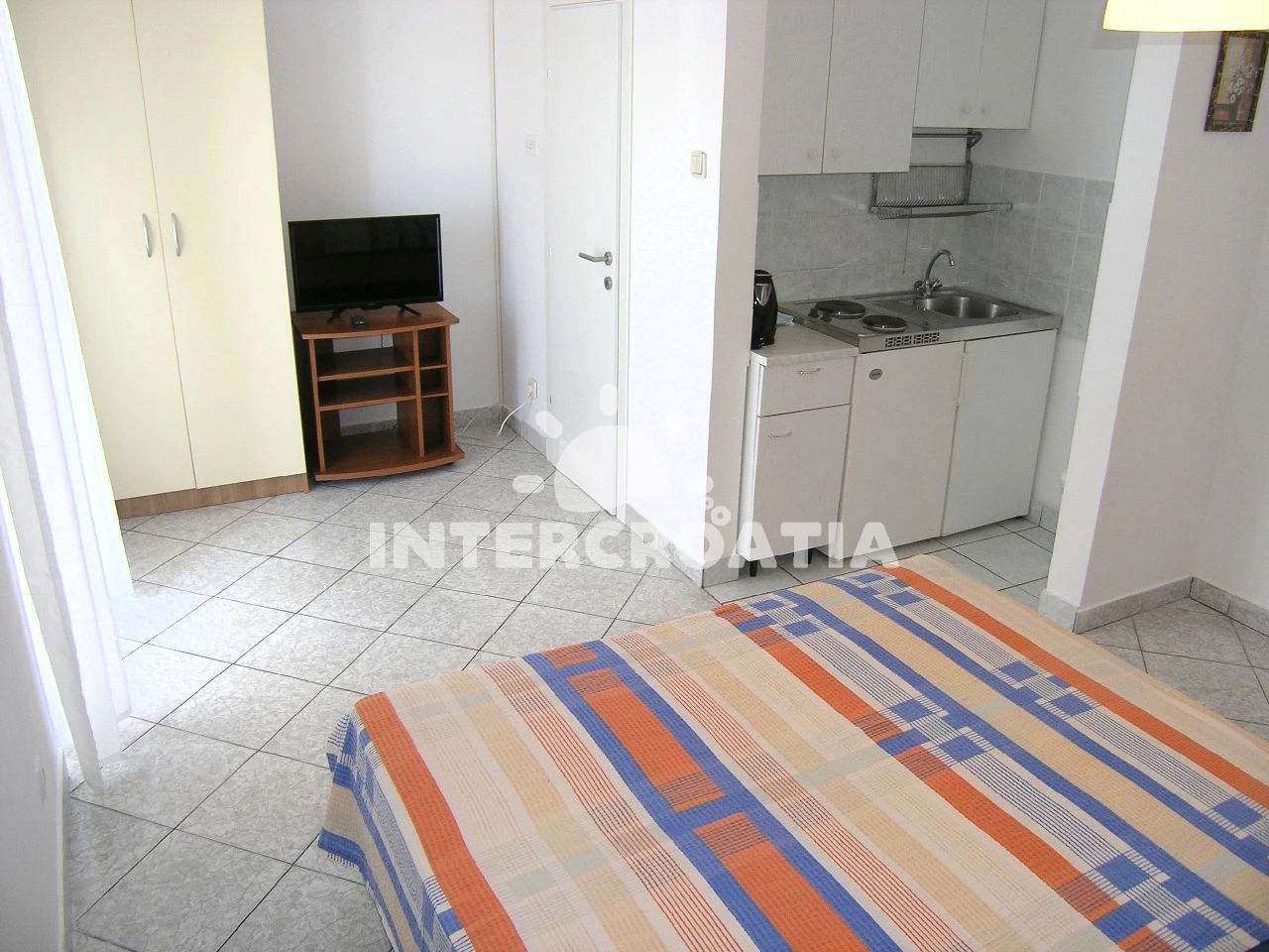 Apartmán typu studio (20 m2) s balkonem, a výhledem na moře. Nachází se ve 2. patře objektu. Kuchyňská linka je vybavena varnou deskou, kávovarem, nádobím, lednicí. K dispozici dvoulůžko, televize se…