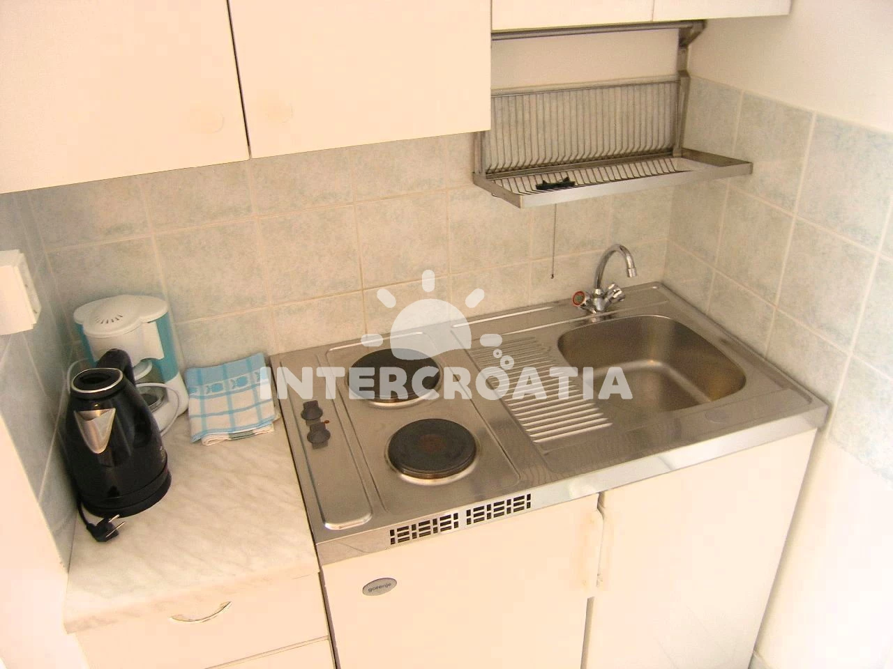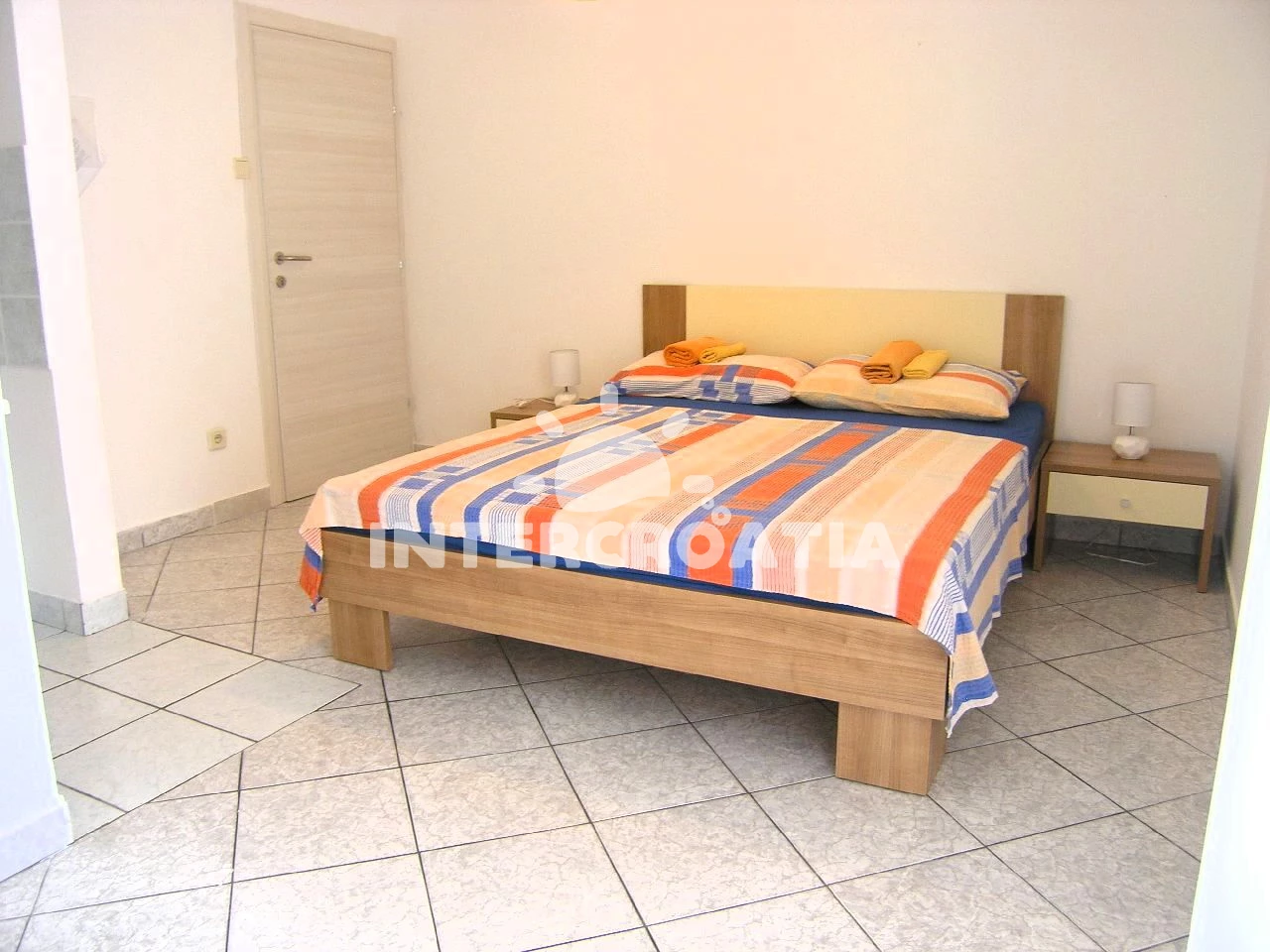 Apartmán typu studio (20 m2) s balkonem, a výhledem na moře. Nachází se ve 2. patře objektu. Kuchyňská linka je vybavena varnou deskou, kávovarem, nádobím, lednicí. K dispozici dvoulůžko, televize se satelitním programem. Koupelna se sprchovým koutem, umyvadlem, WC.