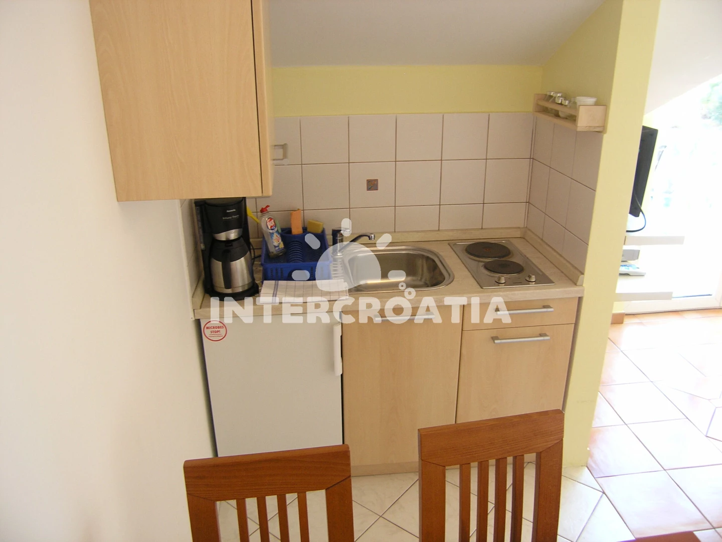Apartmán se nachází 700 m od moře a pláže. Pláž je skalnatá, oblázková a betonové desky. U objektu je k dispozici společná zahrada s posezením a grilem. Parkování je před domem.