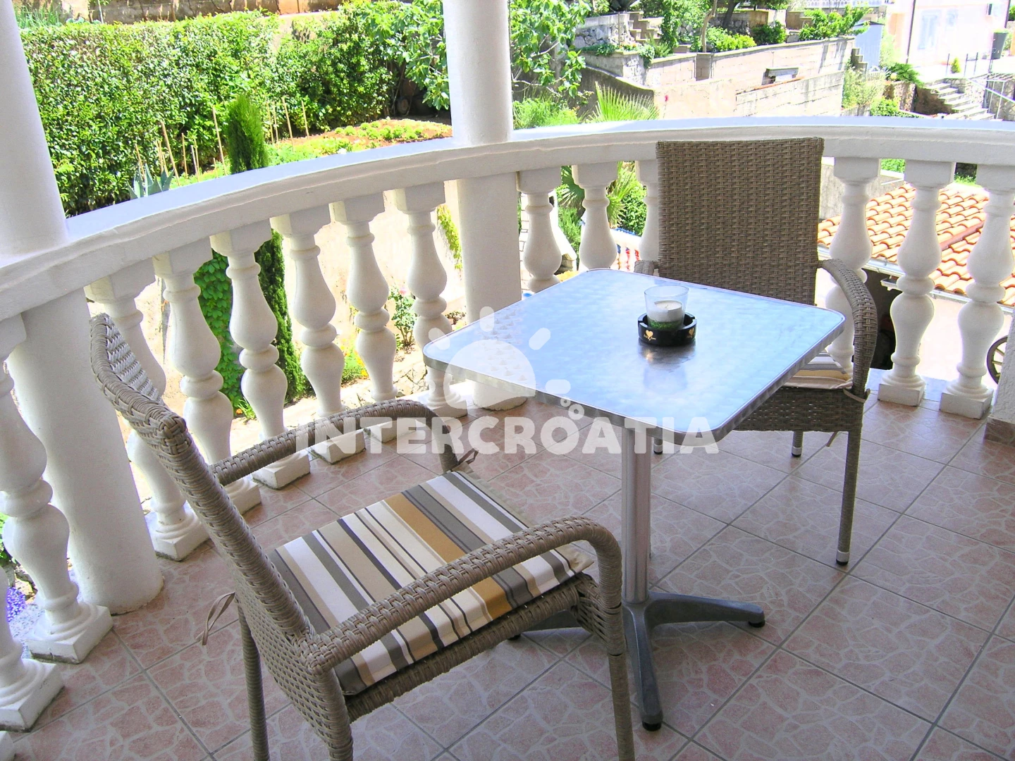 Vzdálenosti: Moře 500 m, pláž 700 m (skalnatá, oblázková a betonové desky), supermarket 200 m, kotviště pro čluny 500 m, veřejná doprava 500 m, potápění 500 m, lékárna 500 m, půjčovna kol 500 m, směnárna 500 m, restaurace 600 m, diskotéka 600 m, centrum 600 m, pošta 600 m, tenisové kurty 600 m, čerpací stanice 600 m, banka 700 m, ambulance 900 m, trajekt (Valbiska (Krk)) 12 km, letiště 25 km,